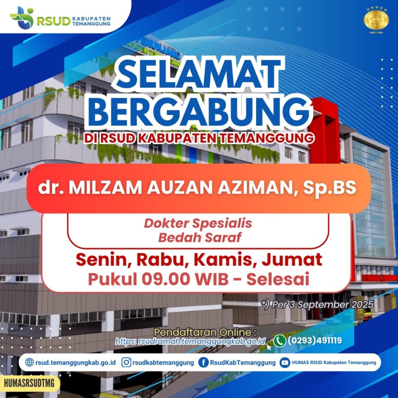 Berita Kategori: Smart Government (Pemerintah Cerdas) Sekretariat Rabu, 03/09/2025 09:58 0 Kegiatan DPMPTSP Selengkapnya Kategori: Smart Government (Pemerintah Cerdas) Sekretariat Rabu, 03/09/2025 09:57 1 Kegiatan DPMPTSP Selengkapnya Kategori: Lainnya Bidang Pemadaman Kebakaran Rabu, 03/09/2025 09:17 43 Satpol PP dan Damkar Temanggung Gelar Pelatihan Pencegahan Kebakaran bagi SPPG Kertosari Selengkapnya Kategori: Smart Government (Pemerintah Cerdas) Sekretariat Rabu, 03/09/2025 09:12 38 REKAPITULASI PELAYANAN DOKUMEN ADMINISTRASI KEPENDUDUKAN DAN PENCATATAN SIPIL Selengkapnya Kategori: Smart Environtment (Lingkungan Cerdas) Sekretariat Rabu, 03/09/2025 09:00 20 Selamat Hari Palang Merah Indonesia Selengkapnya Kategori: Lainnya Bidang Ketentraman, Ketertiban Umum dan Perlindungan Masyarakat Rabu, 03/09/2025 08:15 24 Satpol PP Temanggung Tertibkan Spanduk, Banner, dan Rontek Tak Berizin Selengkapnya Kategori: Smart Government (Pemerintah Cerdas) Sekretariat Rabu, 03/09/2025 08:14 34 Dukung Peningkatan Produktifitas Pertanian, Temanggung Fokus Bangun Irigasi Selengkapnya Kategori: Smart Government (Pemerintah Cerdas) Instalasi Rabu, 03/09/2025 07:54 125 Peringatan Hari Lahir Kejaksaan RI ke-80 Selengkapnya Kategori: Smart Government (Pemerintah Cerdas) SPI Rabu, 03/09/2025 07:51 129 Apel Pagi RSUD Kabupaten Temanggung Selengkapnya Kategori: Pengumuman Bidang Pelayanan Medis Rabu, 03/09/2025 07:45 132 Selamat Bergabung di RSUD Kabupaten Temanggung dr. MILZAM AUZAN AZIMAN, Sp.BS Dokter Spesialis Bedah Saraf Selengkapnya Kategori: Smart Government (Pemerintah Cerdas) Sekretariat Selasa, 02/09/2025 19:45 3 BNPB Perkuat Kapasitas Daerah dalam Penanggulangan Bencana melalui inaRISK Series Selengkapnya Kategori: Smart Government (Pemerintah Cerdas) Sekretariat Selasa, 02/09/2025 19:38 3 LAPORAN AKTIVITAS GUNUNGAPI SUMBING 2 SEPTEMBER 2025 Selengkapnya FirstPrev8485868788NextLast