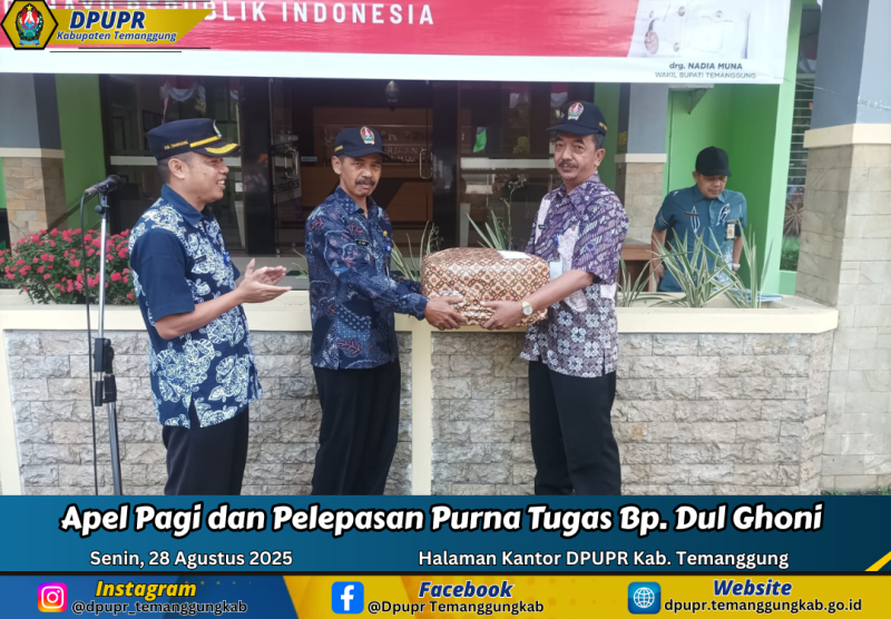 Berita Kategori: Pengumuman Sekretariat Jumat, 29/08/2025 07:00 46 Penundaan Kegiatan GPM di Kabupaten Temanggung Selengkapnya Kategori: Pengumuman Bidang Pangan dan Tanaman Pangan Jumat, 29/08/2025 07:00 44 Permohonan Maaf Penundaan Kegiatan GPM Selengkapnya Kategori: Smart Living (Hidup Cerdas) Seksi Penanganan Darurat dan Logistik Kamis, 28/08/2025 20:47 42 Hujan Deras Sebabkan Longsor di SDN 3 Tuksongo, Tembok Sekolah Runtuh Selengkapnya Kategori: Smart Living (Hidup Cerdas) Seksi Penanganan Darurat dan Logistik Kamis, 28/08/2025 20:44 40 Cuaca Ekstrem Tumbangkan Pohon di Kantor Setda Temanggung Selengkapnya Kategori: Smart Society (Masyarakat Cerdas) Bagian Perekonomian Kamis, 28/08/2025 16:14 63 Gerakan Pangan Murah Selengkapnya Kategori: Smart Economy (Ekonomi Cerdas) Bidang Penyuluhan Kamis, 28/08/2025 15:00 36 Budidaya Kelengkeng BPP Pringsurat Selengkapnya Kategori: Smart Government (Pemerintah Cerdas) Sekretariat Kamis, 28/08/2025 14:10 42 Dinas Sosial menghadiri Kegiatan Pendampingan Pelaksanaan Pengarusutamaan Gender (PUG) Kabupaten Temanggung Tahun 2025 Selengkapnya Kategori: Smart Government (Pemerintah Cerdas) Sekretariat Kamis, 28/08/2025 13:45 25 Kegiatan Pendampingan Pelaksanaan PUG Kabupaten Temanggung tahun 2025 Selengkapnya Kategori: Smart Government (Pemerintah Cerdas) Sekretariat Kamis, 28/08/2025 13:35 22 Apel Pagi dan Pelepasan Purna Tugas Bp. Dul Ghoni Selengkapnya Kategori: Smart Government (Pemerintah Cerdas) Sekretariat Kamis, 28/08/2025 13:34 21 Apel Pagi dan Pelepasan Purna Tugas Bp. Dul Ghoni Selengkapnya Kategori: Smart Government (Pemerintah Cerdas) Seksi Pencegahan dan Kesiapsiagaan Kamis, 28/08/2025 13:22 11 Mitigasi dengan pohon cemara laut Selengkapnya Kategori: Smart Government (Pemerintah Cerdas) Seksi Pencegahan dan Kesiapsiagaan Kamis, 28/08/2025 13:22 5 Mitigasi dengan pohon cemara laut Selengkapnya FirstPrev9596979899NextLast