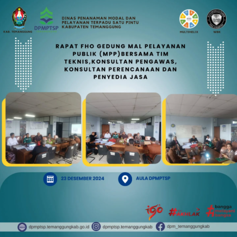 Berita Kategori: Pengumuman Sekretariat Senin, 23/12/2024 15:04 121 WASPADA..Penipuan OSS Nomor Whatsapp Selengkapnya Kategori: Lainnya Sekretariat Senin, 23/12/2024 15:02 47 Apel Luar Biasa Selengkapnya Kategori: Lainnya Sekretariat Senin, 23/12/2024 15:00 46 Rapat Pra FHO Gedung MPP Selengkapnya Kategori: Lainnya Sekretariat Senin, 23/12/2024 14:59 46 Berita Acara PengawaPenyerahan Berita Acara Pengawasansan Selengkapnya Kategori: Smart Government (Pemerintah Cerdas) Sekretariat Senin, 23/12/2024 14:37 105 Rapat Koordinasi dan Evaluasi Penyelenggaraan Satu Data Indonesia Selengkapnya Kategori: Smart Government (Pemerintah Cerdas) Sekretariat Senin, 23/12/2024 13:47 41 Pemkab Temanggung Gelar Pembinaan BUMD sebagai Refleksi Kegiatan Tahun 2024 dan Persiapan Tahun 2025 Selengkapnya Kategori: Smart Environtment (Lingkungan Cerdas) Sekretariat Senin, 23/12/2024 13:00 242 Sosialisasi Capaian Indeks Pembangunan Berwawasan Kependudukan (IPBK) Selengkapnya Kategori: Smart Government (Pemerintah Cerdas) Sekretariat Senin, 23/12/2024 12:48 261 Diseminasi Analisis Indeks Daya Saing Daerah (IDSD) Provinsi Jawa Tengah Selengkapnya Kategori: Smart Government (Pemerintah Cerdas) Sekretariat Senin, 23/12/2024 12:14 93 DPRKPLH Temanggung Melaksanakan Apel Luar Biasa Dalam Rangka Hari Ibu ke-96 Tahun Selengkapnya Kategori: Smart Government (Pemerintah Cerdas) Sekretariat Senin, 23/12/2024 10:47 43 Inspektorat Kabupaten Temanggung Lakukan Studi Komparasi ke Inspektorat Gunung Kidul untuk Memperkuat Strategi Pengawasan Selengkapnya Kategori: Smart Government (Pemerintah Cerdas) Sekretariat Senin, 23/12/2024 10:00 84 Apel Luar Biasa Dalam Rangka Peringatan Hari Ibu Selengkapnya Kategori: Smart Economy (Ekonomi Cerdas) Sekretariat Senin, 23/12/2024 10:00 147 Selamat untuk DKPPP Temanggung Selengkapnya FirstPrev10771078107910801081NextLast