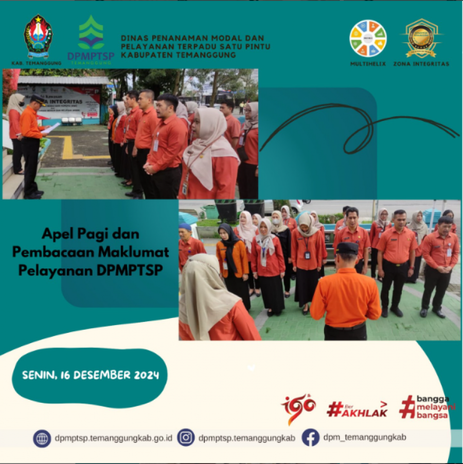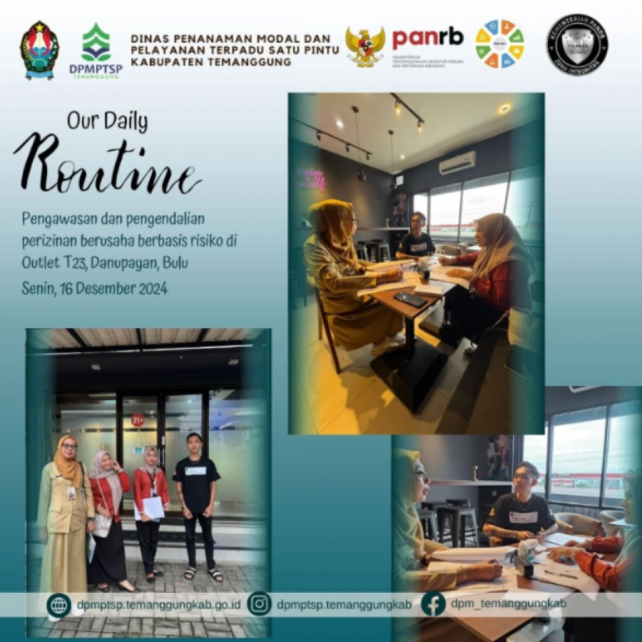 Berita Kategori: Smart Government (Pemerintah Cerdas) Sekretariat Senin, 16/12/2024 14:52 84 Pelatihan Sipades 3.0 bagi Admin Ddesa se-Kecamatan Kandangan Selengkapnya Kategori: Smart Government (Pemerintah Cerdas) Sekretariat Senin, 16/12/2024 14:51 55 Rapat Pembahasan Klarifikasi Lapangan Selengkapnya Kategori: Smart Government (Pemerintah Cerdas) Sekretariat Senin, 16/12/2024 14:50 41 Proses Pendaftaran Akun PPK (Pejabat Pembuat Komitmen) dan Bendahara pada INAPROC Non-Penyedia Selengkapnya Kategori: Smart Government (Pemerintah Cerdas) Sekretariat Senin, 16/12/2024 14:50 44 Bimbingan Teknis (Bimtek) RTP Kabupaten Temanggung Tahun 2025 Selengkapnya Kategori: Smart Government (Pemerintah Cerdas) Sekretariat Senin, 16/12/2024 14:48 39 Konsinyering Penyusunan APBDesa Kecamatan Ngadirejo Selengkapnya Kategori: Smart Government (Pemerintah Cerdas) Sekretariat Senin, 16/12/2024 14:47 45 Dinpermades Kabupaten Temanggung Terima Kunjungan dari Pihak Bank Mandiri Selengkapnya Kategori: Smart Government (Pemerintah Cerdas) Sekretariat Senin, 16/12/2024 14:22 189 Apel Pagi Karyawan-Karyawati Dinas Kesehatan Kabupaten Temanggung Sosialisasi Hakordia 2024 Kab.Temanggung Selengkapnya Kategori: Lainnya Sekretariat Senin, 16/12/2024 13:01 41 Pengawasan dan pengendalian perizinan berusaha berbasis risiko Selengkapnya Kategori: Pengumuman Sekretariat Senin, 16/12/2024 12:57 86 Pendampingan perizinan berusaha Selengkapnya Kategori: Lainnya Sekretariat Senin, 16/12/2024 12:55 42 layanan konsultasi di gerai DPMPTSP Kabupaten Temanggung Selengkapnya Kategori: Lainnya Sekretariat Senin, 16/12/2024 12:54 44 Apel pagi rutin karyawan/karyawati DPMPTSP Selengkapnya Kategori: Smart Government (Pemerintah Cerdas) Sekretariat Senin, 16/12/2024 09:35 217 Pembacaan Materi Nilai-Nilai Anti Korupsi Selengkapnya FirstPrev10891090109110921093NextLast