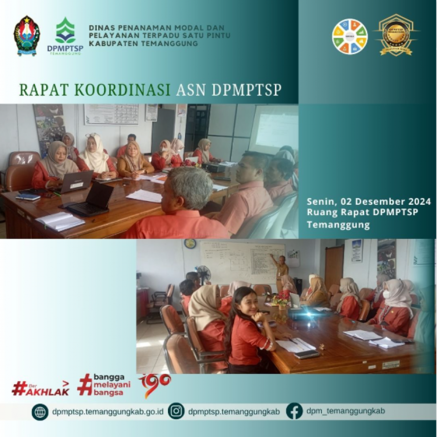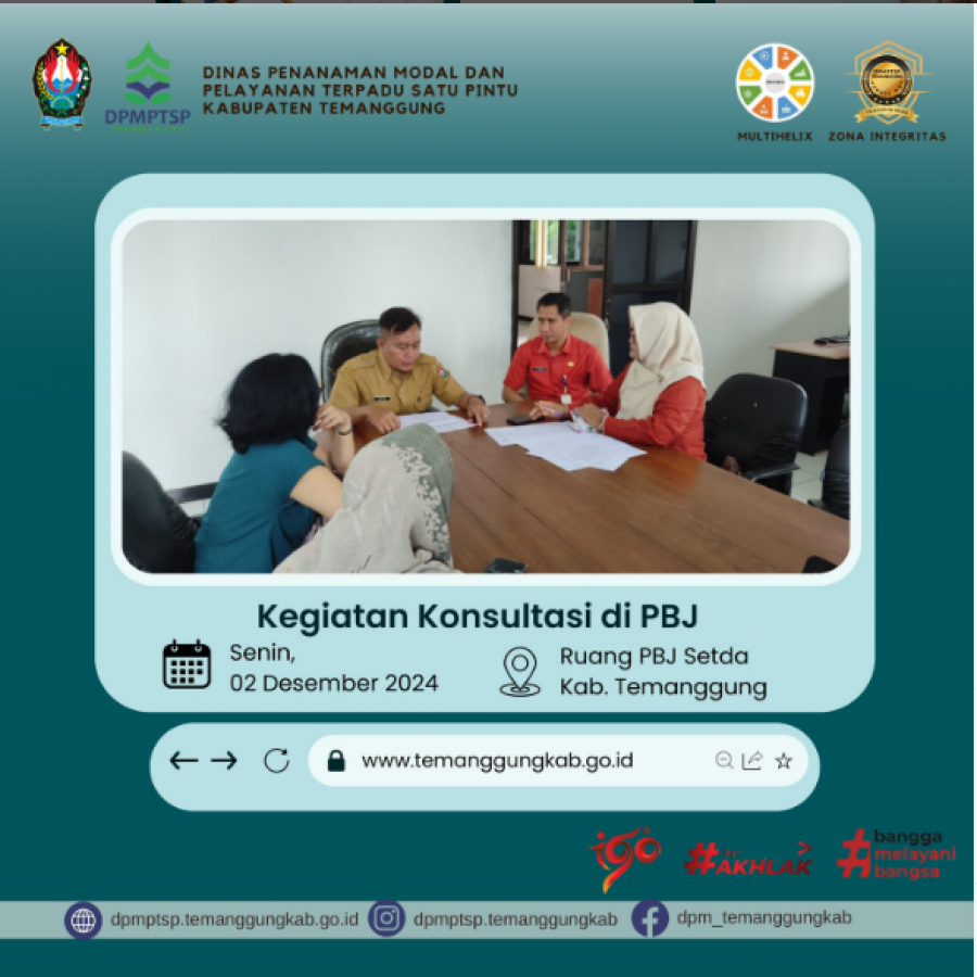 Berita Kategori: Lainnya Sekretariat Senin, 02/12/2024 11:11 61 Rapat koordinasi internal DPMPTSP Selengkapnya Kategori: Smart Government (Pemerintah Cerdas) Sekretariat Senin, 02/12/2024 11:02 55 Rapat Koordinasi Persiapan Pelaksanaan TMMD Tahun 2025 di Ruang Command Center Dinpermades Temanggung Selengkapnya Kategori: Lainnya Sekretariat Senin, 02/12/2024 10:44 56 zoom meeting Penilaian Formulir UKL-UPL Selengkapnya Kategori: Smart Government (Pemerintah Cerdas) Sekretariat Senin, 02/12/2024 10:13 64 Rakor Audit Kinerja Investasi: Inspektorat dan DPMPTSP Wujudkan Tata Kelola Investasi yang Akuntabel Selengkapnya Kategori: Smart Government (Pemerintah Cerdas) Sekretariat Senin, 02/12/2024 10:00 1031 HARI PERTAMA GIAT PENATAUSAHAAN BARANG MILIK DAERAH Selengkapnya Kategori: Smart Government (Pemerintah Cerdas) SPI Senin, 02/12/2024 09:55 269 Selamat Bergabung di RSUD Kabupaten Temanggung dr. MUHAMMAD KAMIL, MD., Ph.D dan dr. FARIZ EKA SETIAWAN, Sp. BS Dokter Spesialis Bedah Saraf Selengkapnya Kategori: Smart Government (Pemerintah Cerdas) SPI Senin, 02/12/2024 09:53 205 Selamat Bergabung di RSUD Kabupaten Temanggung dr. REZA AJI PRADIPTO, Sp. B Dokter Spesialis Bedah Selengkapnya Kategori: Lainnya Sekretariat Senin, 02/12/2024 09:53 88 Pengadaan Secara Elektronik (LPSE) Selengkapnya Kategori: Smart Government (Pemerintah Cerdas) Sekretariat Senin, 02/12/2024 09:48 55 Pelaksanaan Ujian Pengisian Perangkat Desa Formasi Sekretaris Desa Greges, Kecamatan Tembarak, Kabupaten Temanggung Selengkapnya Kategori: Smart Government (Pemerintah Cerdas) Sekretariat Senin, 02/12/2024 09:44 43 Pelaksanaan Ujian Pengisian Perangkat Desa Pingit Pringsurat, Formasi Sekretaris Desa dan Kepala Seksi Pelayanan, bertempat di SMK Negeri Pringsurat Selengkapnya Kategori: Smart Government (Pemerintah Cerdas) Sekretariat Senin, 02/12/2024 09:15 49 Rapat Internal Rutin Mingguan di Dinpermades Temanggung Selengkapnya Kategori: Smart Government (Pemerintah Cerdas) Sekretariat Senin, 02/12/2024 09:11 77 Desk Evaluasi Register Risiko Operasional: Sinergi Inspektorat dan DPUPR dalam Penguatan Manajemen Risiko Selengkapnya FirstPrev11121113111411151116NextLast