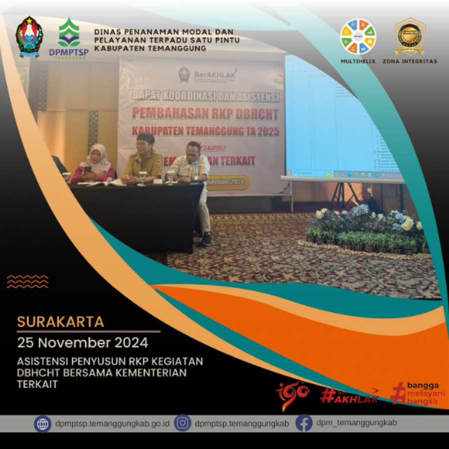 Berita Kategori: Smart Government (Pemerintah Cerdas) Sekretariat Senin, 25/11/2024 12:02 89 Bidang P3KD Dinpermades Temanggung Laksanakan Monev Pengelolaan Keuangan Desa dan Pengadaan Barang/Jasa Tahun 2024 di Desa Campursari, Kecamatan Bulu, Bersinergi dengan Inspektorat Selengkapnya Kategori: Smart Government (Pemerintah Cerdas) Sekretariat Senin, 25/11/2024 11:52 246 RAPAT KOORDINASI EVALUASI PELAKSANAAN PENGAWASAN SARANA PELAYANAN KEFARMASIAN DI APOTEK DAN TOKO OBAT TAHUN 2024 Selengkapnya Kategori: Smart Government (Pemerintah Cerdas) Sekretariat Senin, 25/11/2024 11:50 153 Peran Pemerintah Daerah Dalam Penanggulangan Tuberkulosis Selengkapnya Kategori: Smart Government (Pemerintah Cerdas) Sekretariat Senin, 25/11/2024 11:49 121 Selamat Hari Guru Nasional 2024 Selengkapnya Kategori: Smart Government (Pemerintah Cerdas) SPI Senin, 25/11/2024 11:36 129 Informasi Layanan Poliklinik Selengkapnya Kategori: Smart Society (Masyarakat Cerdas) Sekretariat Senin, 25/11/2024 11:11 104 Syarat Pembuatan NIB Selengkapnya Kategori: Smart Society (Masyarakat Cerdas) Sekretariat Senin, 25/11/2024 11:03 98 Panduan Pembuatan NIB Selengkapnya Kategori: Lainnya Sekretariat Senin, 25/11/2024 10:59 62 Asistensi Penyusunan RKP Kegiatan DBHCHT Selengkapnya Kategori: Lainnya Sekretariat Senin, 25/11/2024 10:58 72 Kunjungan Kerja terkait penilaian kinerja PTSP dan PPB Selengkapnya Kategori: Lainnya Sekretariat Senin, 25/11/2024 10:56 65 Kunjungan Kerja DPMPTSP Kabupaten Temanggung ke Kementerian Investasi dan Hilirisasi /BKPM Selengkapnya Kategori: Pengumuman Sekretariat Senin, 25/11/2024 10:54 187 Selamat Hari Guru Nasional Selengkapnya Kategori: Lainnya Sekretariat Senin, 25/11/2024 10:52 112 Potensi Investasi Sektor Pariwisata Selengkapnya FirstPrev11201121112211231124NextLast