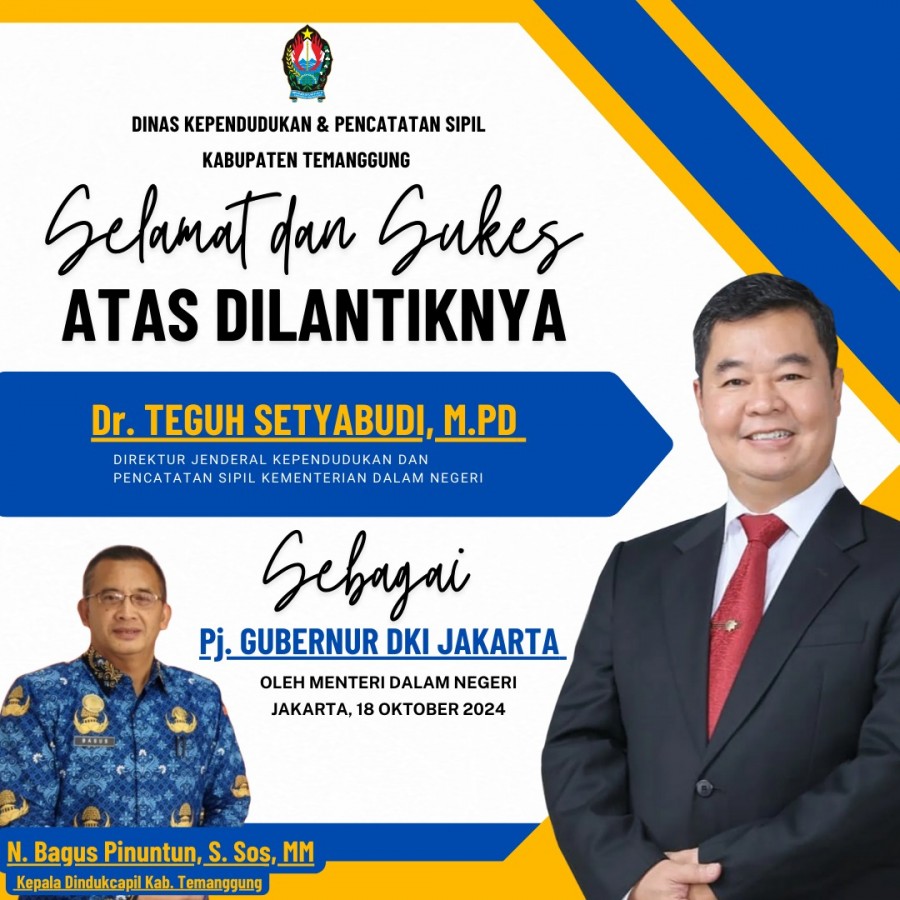 Berita Kategori: Smart Government (Pemerintah Cerdas) Sekretariat Jumat, 18/10/2024 15:38 93 Rapat Koordinasi dan Evaluasi Keterisian E-Walidata SIPD-RI Selengkapnya Kategori: Smart Government (Pemerintah Cerdas) Sekretariat Jumat, 18/10/2024 14:40 162 Kegiatan DPMPTSP 18 Oktober 2024 Selengkapnya Kategori: Smart Government (Pemerintah Cerdas) Sekretariat Jumat, 18/10/2024 14:39 78 Kegiatan DPMPTSP 18 Oktober 2024 Selengkapnya Kategori: Smart Government (Pemerintah Cerdas) Sekretariat Jumat, 18/10/2024 14:38 140 Kegiatan DPMPTSP 18 Oktober 2024 Selengkapnya Kategori: Smart Government (Pemerintah Cerdas) Sekretariat Jumat, 18/10/2024 14:21 212 "Selamat atas dilantiknya Bapak Teguh Setyabudi sebagai Penjabat Gubernur DKI Jakarta" Selengkapnya Kategori: Smart Government (Pemerintah Cerdas) Sekretariat Jumat, 18/10/2024 11:06 213 DUKCAPIL TEMANGGUNG TERIMA AUDIT INSPEKTORAT TENTNAG KINERJA PELAYANAN PUBLIK TAHUN 2024 SEMESTER 1 Selengkapnya Kategori: Lainnya Sekretariat Jumat, 18/10/2024 10:27 72 Kunjungan Kerja Industri Selengkapnya Kategori: Lainnya Sekretariat Jumat, 18/10/2024 10:18 118 Upacara Pembukaan “Jota Joti Nasional 2024” SBP Kwarcab Temanggung Selengkapnya Kategori: Lainnya Sekretariat Jumat, 18/10/2024 09:46 137 SELAMAT DAN SUKSES Atas Peresmian Pengangkatan Pimpinan DPRD Kabupaten Temanggung Masa Jabatan Tahun 2024 - 2029 Selengkapnya Kategori: Smart Economy (Ekonomi Cerdas) Sekretariat Jumat, 18/10/2024 09:30 228 MEMBANGUN EKONOMI MASYARAKAT DENGAN BATA TEMPEL KINGDOM DI DESA KEBUMEN KEC. PRINGSURAT KAB. TEMANGGUNG Selengkapnya Kategori: Smart Government (Pemerintah Cerdas) Sekretariat Jumat, 18/10/2024 09:09 149 Bimtek Peningkatan Indeks Efektivitas Pengendalian Korupsi (IEPK) Level 3 oleh BPKP Hari Ke -2 Selengkapnya Kategori: Smart Environtment (Lingkungan Cerdas) Sekretariat Jumat, 18/10/2024 09:00 122 Pertemuan Calon Pengantin Dalam Upaya Pencegahan Stunting dan Keluarga Beresiko Stunting Selengkapnya FirstPrev11871188118911901191NextLast