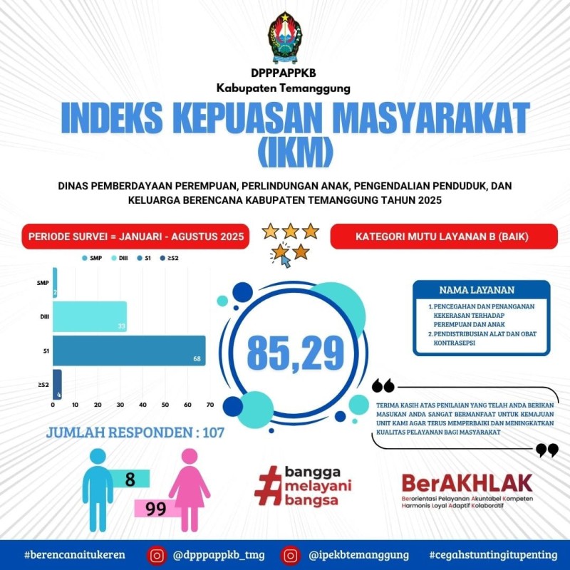 Berita Kategori: Smart Environtment (Lingkungan Cerdas) Sekretariat Kamis, 09/10/2025 15:00 4 Survei Kepuasan Masyarakat Tahun 2025 Layanan Pencegahan dan Penanganan Kasus terhadap Perempuan dan Anak serta Layanan Pendistribusian Alat dan Obat Kontrasepsi Selengkapnya Kategori: Smart Society (Masyarakat Cerdas) Bidang Informasi dan Komunikasi Publik Kamis, 09/10/2025 14:27 14 Sosialisasi Smart Village Dorong Transformasi Digital di Kecamatan Pringsurat Selengkapnya Kategori: Smart Society (Masyarakat Cerdas) Bidang Informasi dan Komunikasi Publik Kamis, 09/10/2025 14:25 16 Dinkominfo Ajak Siswa SMP Gunakan Internet dan Medsos Secara Bijak Selengkapnya Kategori: Smart Government (Pemerintah Cerdas) Sekretariat Kamis, 09/10/2025 14:15 13 Dinas Sosial melaksanakan apel pagi bersama di Halaman Dinsos Selengkapnya Kategori: Smart Society (Masyarakat Cerdas) Sekretariat Kamis, 09/10/2025 13:48 11 Pelayanan kartu AK 1 / Kartu kuning bagi pencari kerja Selengkapnya Kategori: Smart Society (Masyarakat Cerdas) Sekretariat Kamis, 09/10/2025 13:34 12 Sosialisasi Pencegahan TPPO dan TPPM Selengkapnya Kategori: Smart Government (Pemerintah Cerdas) Bidang Perlindungan dan Jaminan Sosial Kamis, 09/10/2025 13:23 12 Dinas Sosial Kabupaten Temanggung bersama Taruna Siaga Bencana (TAGANA) Temanggung melakukan kegiatan penanggulangan bencana angin ribut Selengkapnya Kategori: Smart Society (Masyarakat Cerdas) Bidang Hubungan Industrial dan Syarat Kerja Kamis, 09/10/2025 13:18 10 Asistensi Penyusunan Peraturan Perusahaan PT. BPR Kedu Arthasetia. Selengkapnya Kategori: Smart Government (Pemerintah Cerdas) Sekretariat Kamis, 09/10/2025 13:14 10 Megikuti Rakor Pengelolaan Keuangan Daerah Selengkapnya Kategori: Smart Government (Pemerintah Cerdas) Sekretariat Kamis, 09/10/2025 10:38 5 Pembekalan Evaluasi AKIP Bagi Tim Evaluator Kabupaten Temanggugng Selengkapnya Kategori: Smart Government (Pemerintah Cerdas) Sekretariat Kamis, 09/10/2025 10:06 5 Pembinaan Kegiatan Statistik Sektoral oleh BPS Kabupaten Temanggung Selengkapnya Kategori: Smart Environtment (Lingkungan Cerdas) Bidang Pengendalian Penduduk dan Peningkatan Keluarga Sejahtera Kamis, 09/10/2025 09:00 3 Rapat Koordinasi Percepatan Penurunan Stunting bertempat di Ruang Asisten I Sekda Kabupaten Temanggung Selengkapnya Prev12345NextLast