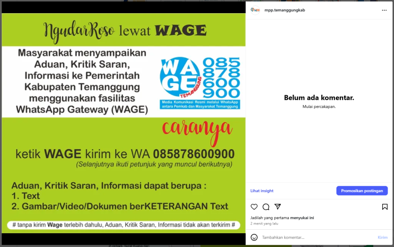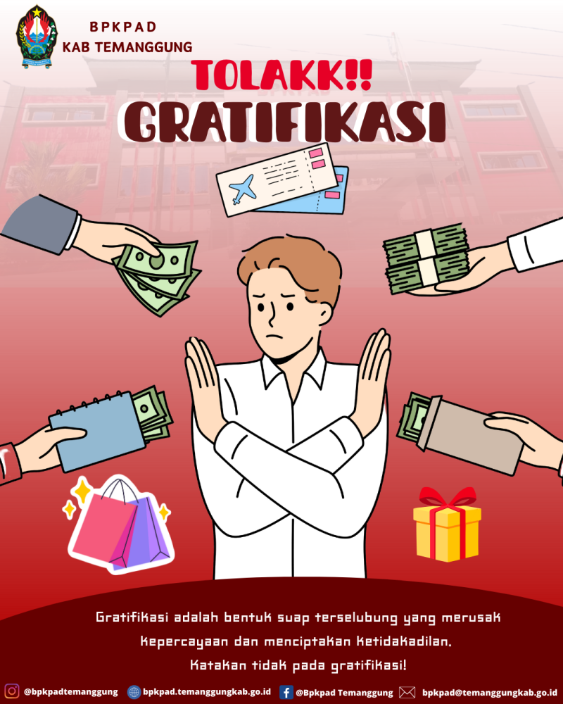Berita Kategori: Smart Government (Pemerintah Cerdas) Sekretariat Jumat, 12/09/2025 11:00 15 Pengumuman Selengkapnya Kategori: Smart Government (Pemerintah Cerdas) Bidang Perpustakaan Jumat, 12/09/2025 10:54 20 Rapat Koordinasi IPI / Ikatan Pustakawan Indonesia Kabupaten Temanggung Selengkapnya Kategori: Smart Government (Pemerintah Cerdas) Sekretariat Jumat, 12/09/2025 10:00 26 TOLAK GRATIFIKASI Selengkapnya Kategori: Smart Government (Pemerintah Cerdas) Sekretariat Jumat, 12/09/2025 10:00 30 ANTIKORUPSI Selengkapnya Kategori: Lainnya Bidang Ketentraman, Ketertiban Umum dan Perlindungan Masyarakat Jumat, 12/09/2025 09:52 16 Satpol PP Temanggung Amankan Kegiatan Senam Bersama dan Gebyar PKK di Halaman Setda Selengkapnya Kategori: Smart Government (Pemerintah Cerdas) Sekretariat Jumat, 12/09/2025 08:45 14 Senam Bersama yang diadakan oleh Tim Penggerak Pemberdayaan dan Kesejahteraan Keluarga (PKK) Kabupaten Temanggung dan bekerjasama dengan Pemerintah Kabupaten Temanggung Selengkapnya Kategori: Pengumuman Sekretariat Jumat, 12/09/2025 08:27 105 Pengumuman Rekrutmen : Asisten Bisnis (Bussiness Assistant) Untuk Koperasi Desa/Kelurahan Merah Putih (KDMP) Selengkapnya Kategori: Smart Government (Pemerintah Cerdas) SPI Jumat, 12/09/2025 07:49 9 GEBYAR PKK 2025 Selengkapnya Kategori: Smart Government (Pemerintah Cerdas) Seksi Pencegahan dan Kesiapsiagaan Jumat, 12/09/2025 07:47 0 LAPORAN AKTIVITAS GUNUNGAPI SUNDORO 12 SEPTEMBER 2025 Selengkapnya Kategori: Smart Government (Pemerintah Cerdas) Seksi Pencegahan dan Kesiapsiagaan Jumat, 12/09/2025 07:46 0 LAPORAN AKTIVITAS GUNUNGAPI SUMBING 12 SEPTEMBER 2025 Selengkapnya Kategori: Lainnya Bidang Ketentraman, Ketertiban Umum dan Perlindungan Masyarakat Kamis, 11/09/2025 22:45 13 Patroli Gabungan Satpol PP, TNI, dan Polri Ciptakan Situasi Aman di Wilayah Temanggung Kota Selengkapnya Kategori: Lainnya Bidang Pemadaman Kebakaran Kamis, 11/09/2025 21:43 14 Damkar Temanggung Evakuasi Sarang Tawon di Candi Asri, Bansari dan Lanjutkan Tugas ke Parakan Selengkapnya FirstPrev3738394041NextLast