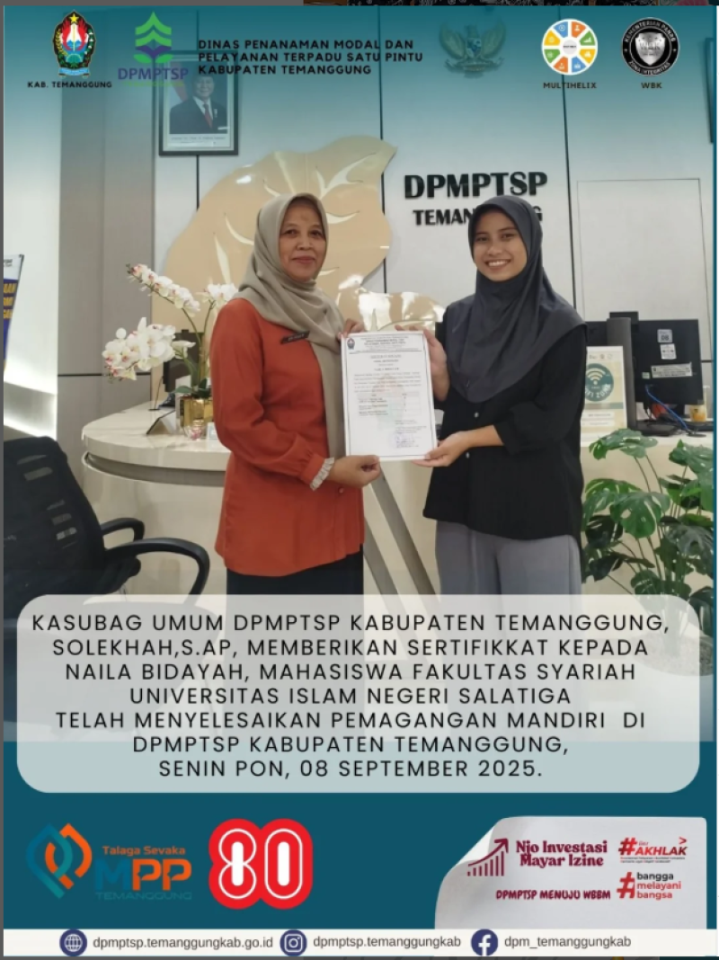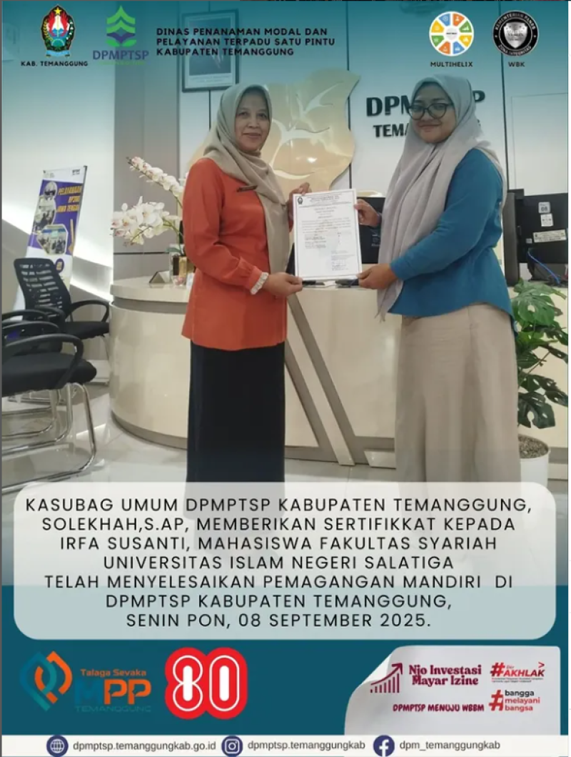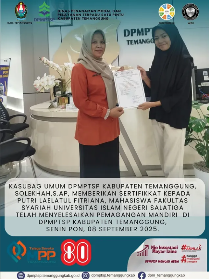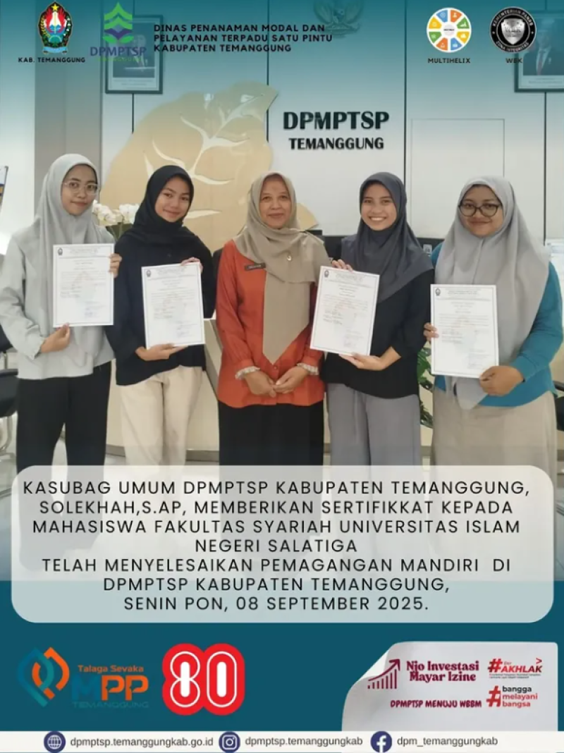 Berita Kategori: Smart Society (Masyarakat Cerdas) Bidang Pemerintahan Desa Senin, 08/09/2025 12:38 13 Pembukaan Pelatihan Autocad Bagi Perangkat Desa Gelombang VI Selengkapnya Kategori: Pengumuman Sekretariat Senin, 08/09/2025 12:17 26 TOLAK KORUPSI DAN GRATIFIKASI Selengkapnya Kategori: Smart Government (Pemerintah Cerdas) Bidang Perencanaan Ekonomi, Sumber Daya Alam dan Infrastruktur Senin, 08/09/2025 12:08 11 Rapat Koordinasi Persiapan Penilaian Kabupaten/Kota Pangan Aman Selengkapnya Kategori: Lainnya Bidang Ketentraman, Ketertiban Umum dan Perlindungan Masyarakat Senin, 08/09/2025 12:04 26 Satpol PP Temanggung Laksanakan Pemantauan Gerakan Pangan Murah Selengkapnya Kategori: Smart Government (Pemerintah Cerdas) SPI Senin, 08/09/2025 10:37 124 RSUD Kabupaten Temanggung berkomitmen penuh menciptakan Zona Integritas Selengkapnya Kategori: Smart Government (Pemerintah Cerdas) Sekretariat Senin, 08/09/2025 10:34 0 Pengumuman Selengkapnya Kategori: Smart Government (Pemerintah Cerdas) Sekretariat Senin, 08/09/2025 10:34 0 Pengumuman Selengkapnya Kategori: Smart Government (Pemerintah Cerdas) Sekretariat Senin, 08/09/2025 10:34 0 Pengumuman Selengkapnya Kategori: Smart Government (Pemerintah Cerdas) Sekretariat Senin, 08/09/2025 10:33 0 Pengumuman Selengkapnya Kategori: Smart Government (Pemerintah Cerdas) Bidang Statistik dan Persandian Senin, 08/09/2025 10:30 34 Dinkominfo Temanggung Dalam Perencanaan SDG's Selengkapnya Kategori: Smart Government (Pemerintah Cerdas) Sekretariat Senin, 08/09/2025 10:26 0 Pengumuman Selengkapnya Kategori: Smart Government (Pemerintah Cerdas) Sekretariat Senin, 08/09/2025 10:26 0 Kegiatan DPMPTSP Selengkapnya FirstPrev5455565758NextLast