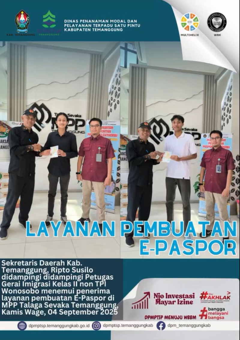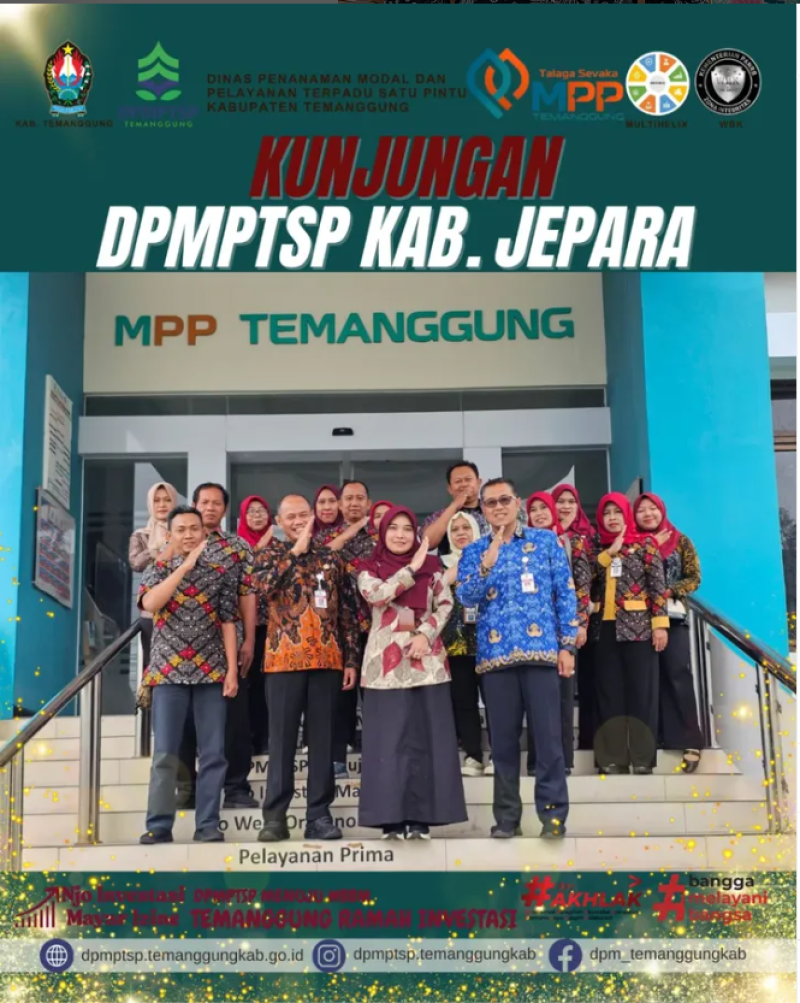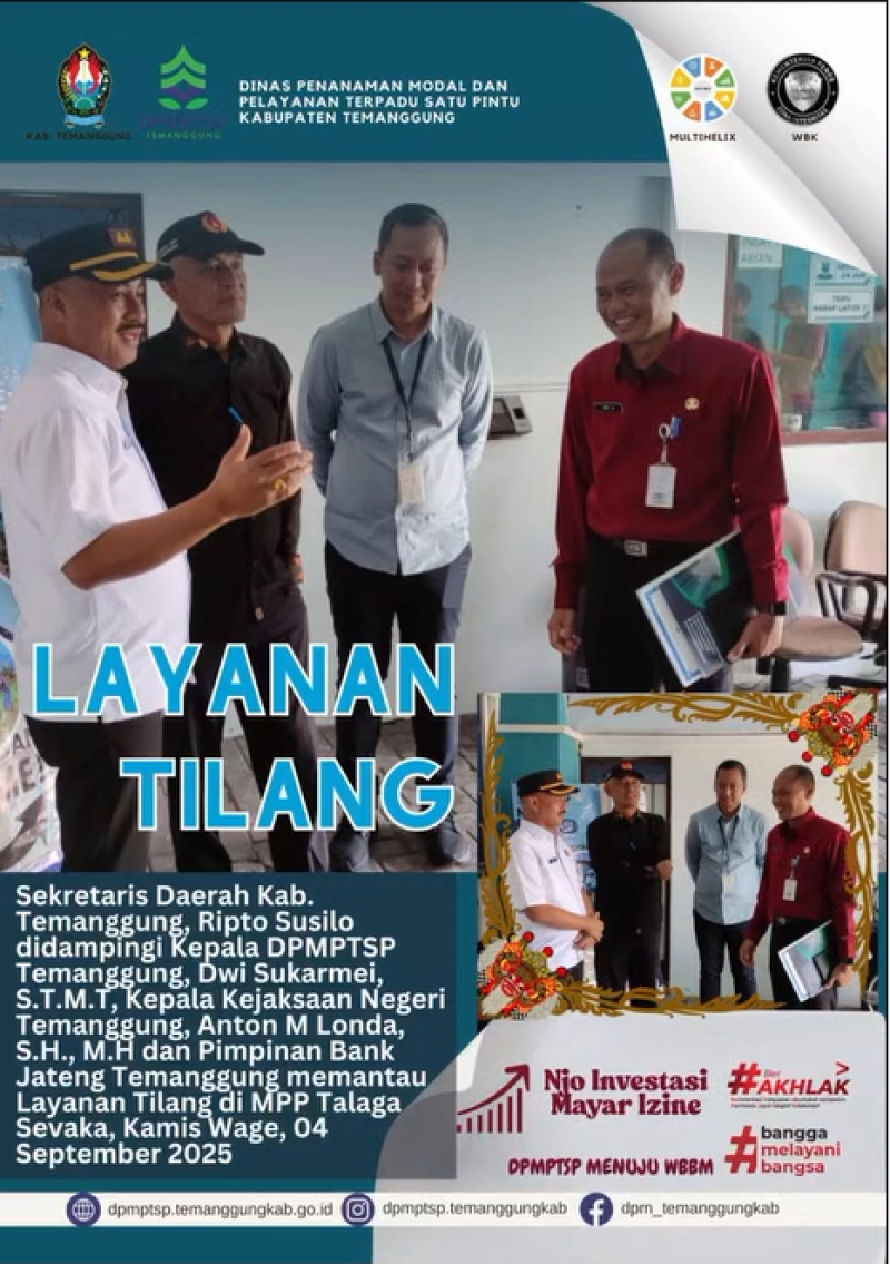 Berita Kategori: Smart Government (Pemerintah Cerdas) Sekretariat Kamis, 04/09/2025 09:59 0 Kegiatan DPMPTSP Selengkapnya Kategori: Smart Government (Pemerintah Cerdas) Sekretariat Kamis, 04/09/2025 09:59 0 Kegiatan DPMPTSP Selengkapnya Kategori: Smart Government (Pemerintah Cerdas) Bidang Teknologi Informasi dan Komunikasi Kamis, 04/09/2025 09:41 47 Dinas Kominfo Fasilitasi Zoom Meeting untuk Penyusunan RTKD 2025-2029 Selengkapnya Kategori: Smart Government (Pemerintah Cerdas) Sekretariat Kamis, 04/09/2025 09:12 69 REKAPITULASI PELAYANAN DOKUMEN ADMINISTRASI KEPENDUDUKAN DAN PENCATATAN SIPIL Selengkapnya Kategori: Smart Environtment (Lingkungan Cerdas) Sekretariat Kamis, 04/09/2025 09:00 26 Selamat Memperingati Maulid Nabi Muhammad SAW Selengkapnya Kategori: Smart Living (Hidup Cerdas) Sekretariat Kamis, 04/09/2025 08:48 61 PAMERAN KEARSIPAN DAN PERPUSTAKAAN VIRTUAL JAWA TENGAH 2025 Selengkapnya Kategori: Smart Government (Pemerintah Cerdas) Sekretariat Kamis, 04/09/2025 08:45 0 Kegiatan DPMPTSP Selengkapnya Kategori: Smart Government (Pemerintah Cerdas) Sekretariat Kamis, 04/09/2025 08:15 28 Rapat Persiapan Pelaksanaan Konstruksi Ruas Jalan Bejen Congkran dan Ruas Jalan Kebraman Gemawang Selengkapnya Kategori: Smart Economy (Ekonomi Cerdas) Sekretariat Kamis, 04/09/2025 08:12 33 Baking Xperience oleh LPK Smille Zone Selengkapnya Kategori: Smart Government (Pemerintah Cerdas) Bidang Pelayanan Medis Kamis, 04/09/2025 08:03 117 Apel Pagi RSUD Temanggung: Perkenalan Dokter Spesialis Forensik Medikolegal & Penguatan Koordinasi Pelayanan Selengkapnya Kategori: Lainnya Sekretariat Kamis, 04/09/2025 08:00 32 Selamat Memperingati Maulid Nabi Muhammad SAW Selengkapnya Kategori: Smart Government (Pemerintah Cerdas) Sekretariat Rabu, 03/09/2025 19:43 4 LAPORAN AKTIVITAS GUNUNGAPI SUNDORO 3 SEPTEMBER 2025 Selengkapnya FirstPrev8182838485NextLast