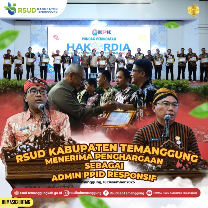 Kategori Smart Government (Pemerintah Cerdas) Kategori: Smart Government (Pemerintah Cerdas) Sekretariat 23 Desember 2025 15:00:00 5 BANKESBANGPOL menghadiri Rapat Koordinasi Rencana Pelaksanaan Pemilihan Kepala Desa Serentak Tahun 2026 Selengkapnya Kategori: Smart Government (Pemerintah Cerdas) Sekretariat 23 Desember 2025 14:45:00 2 Rapat Koordinasi Pengendalian Kegiatan (RKPK) Triwulan IV Selengkapnya Kategori: Smart Government (Pemerintah Cerdas) Sekretariat 23 Desember 2025 14:44:00 2 Penyerahan Surat Izin Tukar Menukar Tanah Kas Desa Tegalrejo Selengkapnya Kategori: Smart Government (Pemerintah Cerdas) Bidang Pemerintahan Desa 23 Desember 2025 14:44:00 2 dentifikasi Pelatihan Bidang Keuangan dan Aset Desa di Desa Jetis Selengkapnya Kategori: Smart Government (Pemerintah Cerdas) Bidang Pemerintahan Desa 23 Desember 2025 14:43:00 2 Rapat Koordinasi Kesepakatan Tahapan Pelaksanaan Pilkades 2026 Selengkapnya Kategori: Smart Government (Pemerintah Cerdas) Bidang Perencanaan Pembangunan dan Pengelolaan Keuangan Desa 23 Desember 2025 14:40:00 0 Rapat Pembahasan Fasilitasi Tiga Raperbup Selengkapnya Kategori: Smart Government (Pemerintah Cerdas) Instalasi 23 Desember 2025 10:02:00 8 RSUD Kabupaten Temanggung Raih Penghargaan Admin PPID Responsif 2025 Selengkapnya Kategori: Smart Government (Pemerintah Cerdas) Sekretariat 23 Desember 2025 09:27:00 2 Penerimaan Kunjungan Bupati Pringsewu Lampung di Kabupaten Temanggung Selengkapnya Kategori: Smart Government (Pemerintah Cerdas) Bidang Kearsipan 23 Desember 2025 08:38:00 21 Kegiatan penyusunan usulan SOP bidang Kearsipan Selengkapnya Kategori: Smart Government (Pemerintah Cerdas) Sekretariat 23 Desember 2025 08:16:00 16 Kegiatan apel luar biasa Peringatan Hari Ibu Selengkapnya Kategori: Smart Government (Pemerintah Cerdas) Sekretariat 23 Desember 2025 08:00:00 4 Penandatanganan Komitmen Bersama Zona Integritas Selengkapnya Kategori: Smart Government (Pemerintah Cerdas) Sekretariat 23 Desember 2025 08:00:00 10 Pencanangan Pembangunan Zona Integritas Dinas Sosial Kabupaten Temanggung Selengkapnya Prev1234NextLast