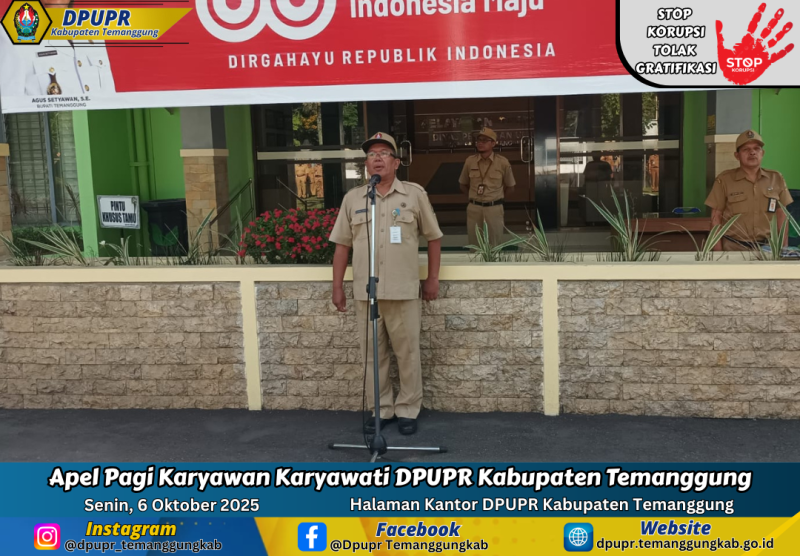 Kategori Smart Government (Pemerintah Cerdas) Kategori: Smart Government (Pemerintah Cerdas) SPI 06 Okt 2025 09:39:00 8 Entry Meeting Pemeriksaan Pendahuluan PBJ Tahun 2024–2025 di Kabupaten Temanggung Selengkapnya Kategori: Smart Government (Pemerintah Cerdas) Instalasi 06 Okt 2025 09:38:00 9 Dirgahayu TNI ke-80 Selengkapnya Kategori: Smart Government (Pemerintah Cerdas) Sekretariat 06 Okt 2025 09:01:00 8 Rapat Persiapan SDGs Action Awards Tahun 2025 Selengkapnya Kategori: Smart Government (Pemerintah Cerdas) Sekretariat 06 Okt 2025 08:16:00 14 Waspada Physing APK Selengkapnya Kategori: Smart Government (Pemerintah Cerdas) Bidang Bina Marga 06 Okt 2025 08:11:00 10 Apel Pagi Karyawan Karyawati DPUPR Kabupaten Temanggung Selengkapnya Kategori: Smart Government (Pemerintah Cerdas) Sekretariat 05 Okt 2025 19:57:00 12 Hujan Deras Sebabkan Jalan Lingkungan Amblas di Kelurahan Manding Selengkapnya Kategori: Smart Government (Pemerintah Cerdas) Sekretariat 05 Okt 2025 13:46:00 7 DIRGAHAYU TNI KE-80 | 5 OKTOBER 2025 Selengkapnya Kategori: Smart Government (Pemerintah Cerdas) Sekretariat 05 Okt 2025 08:10:00 11 DIRGAHAYU HUT Tentara Nasional Indonesia Ke 80 Selengkapnya Kategori: Smart Government (Pemerintah Cerdas) Sekretariat 05 Okt 2025 08:03:00 16 Dirgahayu TNI Ke 80 Tahun Selengkapnya Kategori: Smart Government (Pemerintah Cerdas) Seksi Pencegahan dan Kesiapsiagaan 05 Okt 2025 06:50:00 13 LAPORAN AKTIVITAS GUNUNGAPI SUMBING 05 OKTOBER 2025 Selengkapnya Kategori: Smart Government (Pemerintah Cerdas) Seksi Pencegahan dan Kesiapsiagaan 05 Okt 2025 06:49:00 12 LAPORAN AKTIVITAS GUNUNGAPI SUNDORO 05 OKTOBER 2025 Selengkapnya Kategori: Smart Government (Pemerintah Cerdas) Instalasi 04 Okt 2025 09:35:00 9 HKN ke-61 Kabupaten Temanggung Selengkapnya FirstPrev678910NextLast