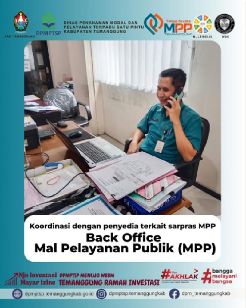 Kategori Lainnya Kategori: Lainnya Sekretariat 19 November 2025 19:03:00 16 MAGANG & KKN TERINTEGRASI INISNU TEMANGGUNG DI DPMPTSP TEMANGGUNG Selengkapnya Kategori: Lainnya Fungsional Pelayanan Terpadu Satu Pintu 19 November 2025 19:02:00 11 Layanan Izin Apotik di MPP Selengkapnya Kategori: Lainnya Fungsional Penanaman Modal 19 November 2025 19:01:00 7 Realisasi Investasi Usaha Mikro Selengkapnya Kategori: Lainnya Fungsional Penanaman Modal 19 November 2025 18:59:00 9 Kajian Potensi Investasi Selengkapnya Kategori: Lainnya Sekretariat 19 November 2025 18:56:00 5 Kegiatan Perawatan Sarpras Kantor Selengkapnya Kategori: Lainnya Sekretariat 19 November 2025 18:53:00 7 MAGANG & KKN TERINTEGRASI INISNU TEMANGGUNG DI DPMPTSP TEMANGGUNG Selengkapnya Kategori: Lainnya Sekretariat 19 November 2025 12:19:00 5 Koordinasi Kepegawaian Selengkapnya Kategori: Lainnya Sekretariat 18 November 2025 18:35:00 9 Selamat Milad Muhammadiyah Selengkapnya Kategori: Lainnya Fungsional Pelayanan Terpadu Satu Pintu 18 November 2025 18:34:00 8 Layanan DPMPTSP Kabupaten Temanggung Selengkapnya Kategori: Lainnya Fungsional Pelayanan Terpadu Satu Pintu 18 November 2025 18:33:00 8 Layanan DPMPTSP Kabupaten Temanggung Selengkapnya Kategori: Lainnya Fungsional Pelayanan Terpadu Satu Pintu 18 November 2025 18:31:00 9 Layanan Izin Reklame Selengkapnya Kategori: Lainnya Fungsional Pelayanan Terpadu Satu Pintu 18 November 2025 18:30:00 11 Layanan MPPD Selengkapnya FirstPrev1213141516NextLast