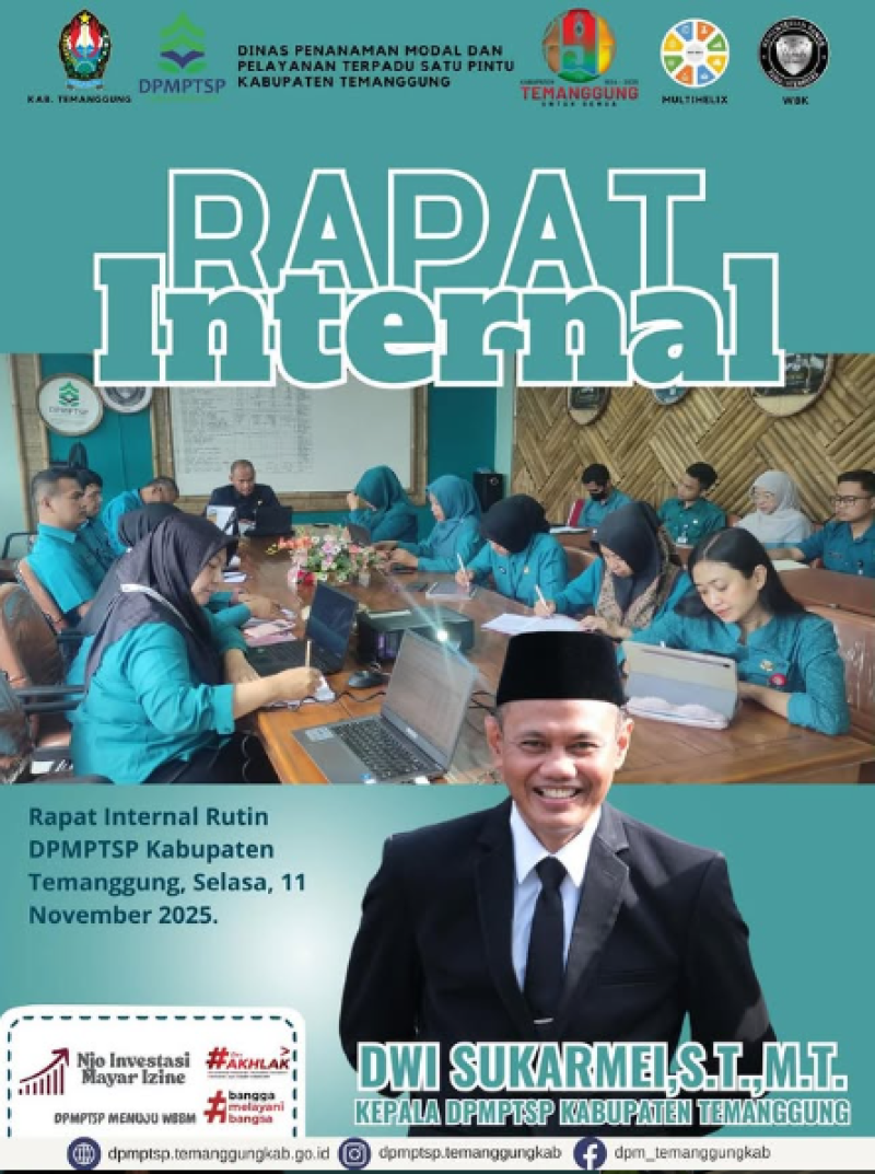 Kategori Lainnya Kategori: Lainnya Sekretariat 11 November 2025 18:00:00 8 Rapat Internal DPMPTSP Selengkapnya Kategori: Lainnya Fungsional Penanaman Modal 11 November 2025 17:58:00 7 Koordinasi Pelaksanaan Penandatanganan Naskah Kerjasama Selengkapnya Kategori: Lainnya Sekretariat 11 November 2025 10:04:00 19 PENGANTARAN PEGAWAI YANG PINDAH TUGAS Selengkapnya Kategori: Lainnya Sekretariat 11 November 2025 10:03:00 19 ACARA LEPAS SAMBUT PEGAWAI YANG PINDAH TUGAS Selengkapnya Kategori: Lainnya Bidang Pemadaman Kebakaran 11 November 2025 08:40:00 20 Tim Rescue Damkar Temanggung Evakuasi Anjing di Lingkungan Sekolah SMK N 2 Temanggung Selengkapnya Kategori: Lainnya Sekretariat 10 November 2025 17:56:00 4 Magang KKN Selengkapnya Kategori: Lainnya Fungsional Penanaman Modal 10 November 2025 17:52:00 5 Salam Investasi Selengkapnya Kategori: Lainnya Bidang Kebudayaan 10 November 2025 14:22:00 31 Temanggung Menari ? Selengkapnya Kategori: Lainnya Sekretariat 10 November 2025 11:56:00 48 Selamat Hari Jadi ke-191 Kabupaten Temanggung Selengkapnya Kategori: Lainnya Sekretariat 10 November 2025 11:56:00 31 Selamat Memperingati Hari Pahlawan Nasional 2025 Selengkapnya Kategori: Lainnya Sekretariat 10 November 2025 08:57:00 31 TIM KORSIK PRAJA SANGKAKALA IRINGI UPACARA HARI PAHLAWAN DAN HARI JADI KE-191 KABUPATEN TEMANGGUNG Selengkapnya Kategori: Lainnya Sekretariat 10 November 2025 08:23:00 35 Selamat Hari Pahlawan Nasional 10 November 2025 Selengkapnya FirstPrev1516171819NextLast