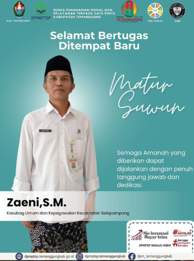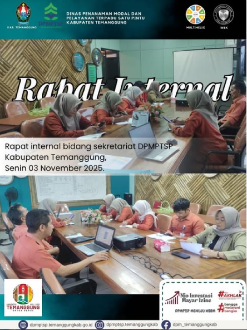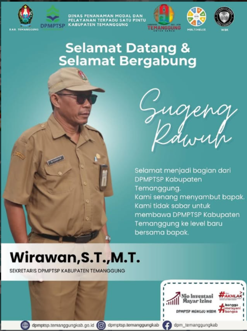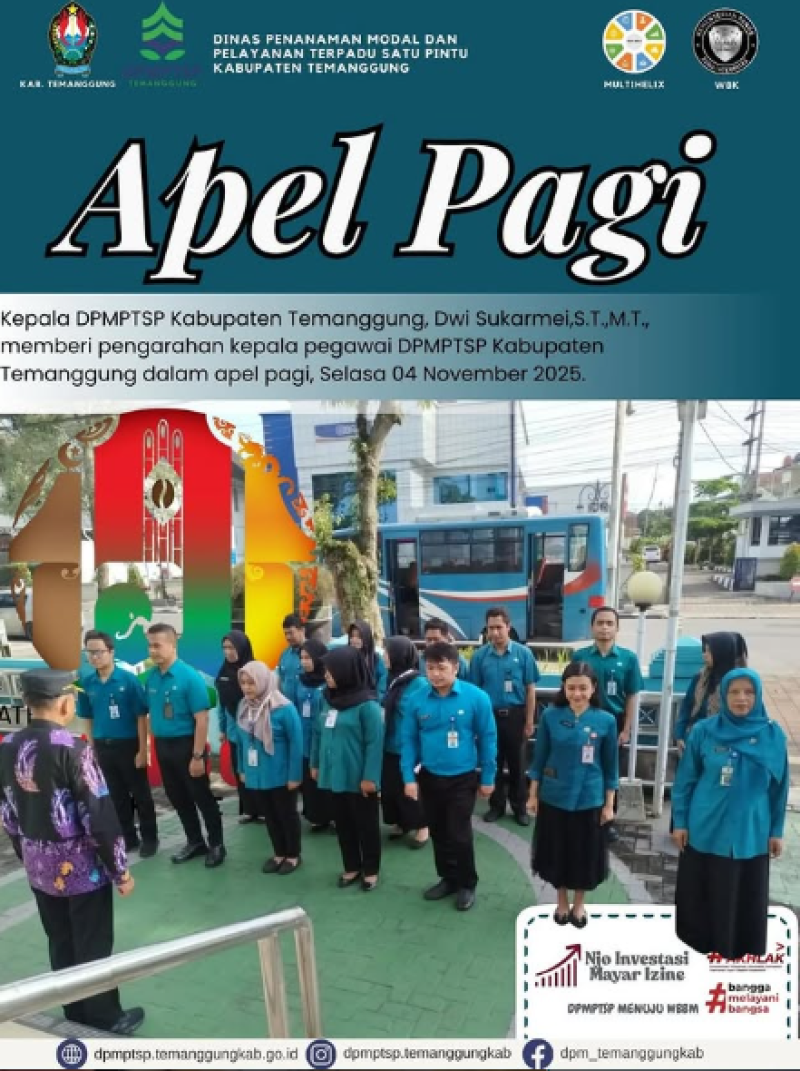 Kategori Lainnya Kategori: Lainnya Sekretariat 04 November 2025 10:42:00 7 Selamat Datang & Selamat Bergabung Selengkapnya Kategori: Lainnya Sekretariat 04 November 2025 10:39:00 5 Selamat Bertugas Di Tempat Baru Selengkapnya Kategori: Lainnya Sekretariat 04 November 2025 10:37:00 5 Selamat Bertugas Di Tempat Baru Selengkapnya Kategori: Lainnya Sekretariat 04 November 2025 10:29:00 5 Kegiatan Apel Pagi DPMPTSP Selengkapnya Kategori: Lainnya Sekretariat 03 November 2025 10:26:00 8 Rapat Internal Sekretariat DPMPTSP Selengkapnya Kategori: Lainnya Sekretariat 03 November 2025 10:23:00 6 Rapat Internal DPMPTSP Selengkapnya Kategori: Lainnya Bidang Kebudayaan 31 Oktober 2025 14:21:00 16 NYADRAN DESA KLEDUNG: WUJUD SYUKUR, PELESTARIAN ALAM, DAN GUYUB RUKUN WARGA LERENG SINDORO Selengkapnya Kategori: Lainnya Bidang Penyuluhan 31 Oktober 2025 13:00:00 28 Testimoni penurunan harga pupuk bersubsidi Selengkapnya Kategori: Lainnya Sekretariat 31 Oktober 2025 10:38:00 35 Selamat dan Sukses kepada Bapak Eko Budi Mulyanto Selengkapnya Kategori: Lainnya Sekretariat 31 Oktober 2025 10:37:00 22 Selamat dan Sukses! Selengkapnya Kategori: Lainnya Sekretariat 31 Oktober 2025 08:00:00 27 Semangat Kebersamaan di HUT KORPRI ke-54! Selengkapnya Kategori: Lainnya Bidang Pariwisata 29 Oktober 2025 14:20:00 26 Sinergi Membangun Pariwisata Berkelanjutan Selengkapnya FirstPrev1718192021NextLast