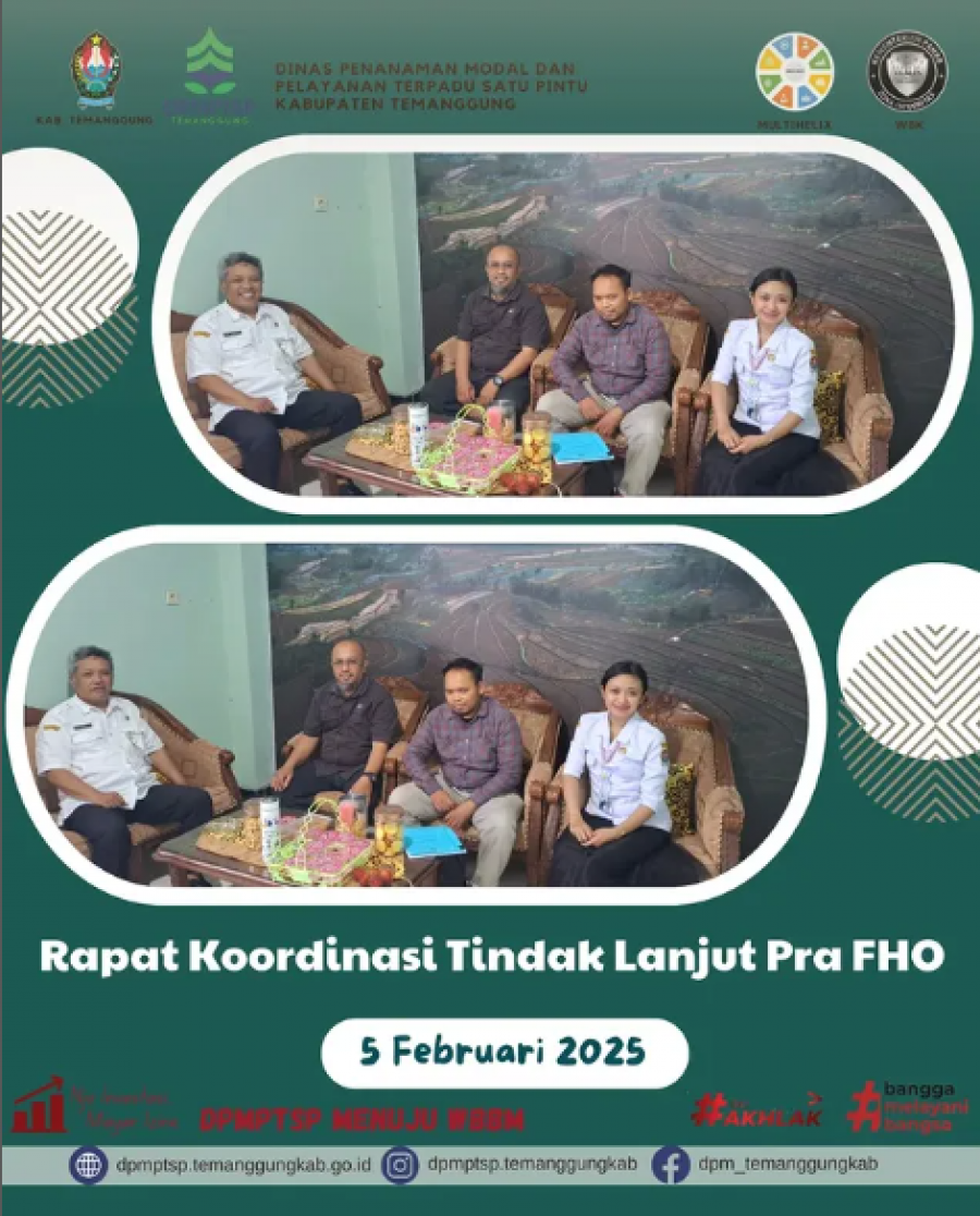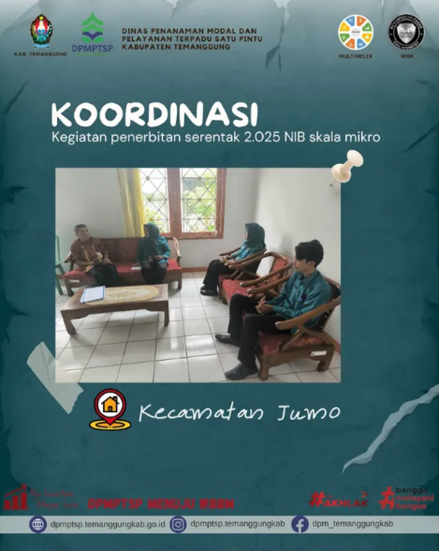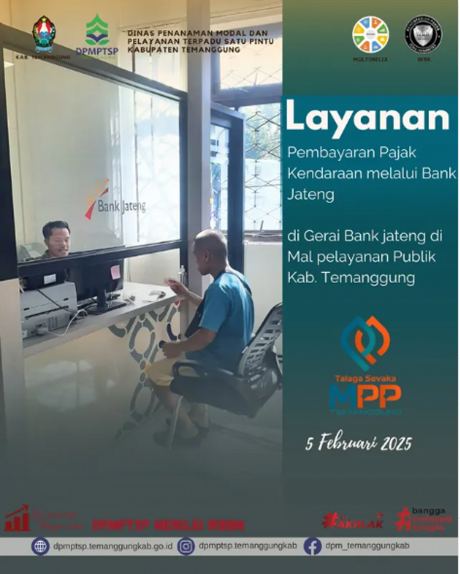 Kategori Lainnya Kategori: Lainnya Sekretariat 05 Februari 2025 10:33:00 64 Rapat koordinasi Tindak Lanjut Pra FHO Gedung MPP Selengkapnya Kategori: Lainnya Sekretariat 05 Februari 2025 10:31:00 88 Verifikasi Lapangan Alih Fungsi Lahan Selengkapnya Kategori: Lainnya Sekretariat 05 Februari 2025 10:14:00 63 layanan pembayaran pajak kendaraan bermotor di gerai Samsat yang ada di MPP Selengkapnya Kategori: Lainnya Sekretariat 05 Februari 2025 10:12:00 60 Pengurusan Produk Halal di Gerai MPP Selengkapnya Kategori: Lainnya Sekretariat 04 Februari 2025 10:30:00 63 Koordinasi Penerbitan NIB serentak Selengkapnya Kategori: Lainnya Sekretariat 04 Februari 2025 10:28:00 45 Koordinasi Penerbitan NIB serentak Selengkapnya Kategori: Lainnya Sekretariat 04 Februari 2025 10:16:00 51 Verifikasi Lapangan Alih Fungsi Lahan Selengkapnya Kategori: Lainnya Sekretariat 04 Februari 2025 10:15:00 76 Verifikasi Lapangan Alih Fungsi Lahan Selengkapnya Kategori: Lainnya Sekretariat 04 Februari 2025 10:11:00 63 Pemenuhan Izin Usaha Koperasi Selengkapnya Kategori: Lainnya Sekretariat 04 Februari 2025 10:10:00 53 Alur dan Syarat Pembuatan NIB Selengkapnya Kategori: Lainnya Sekretariat 04 Februari 2025 10:09:00 48 Hari Kanker Sedunia 2025-2027 Selengkapnya Kategori: Lainnya Sekretariat 04 Februari 2025 10:07:00 42 Apel Pagi karyawan-karyawati DPMPTSP Kabupaten Temanggung Selengkapnya FirstPrev5253545556NextLast