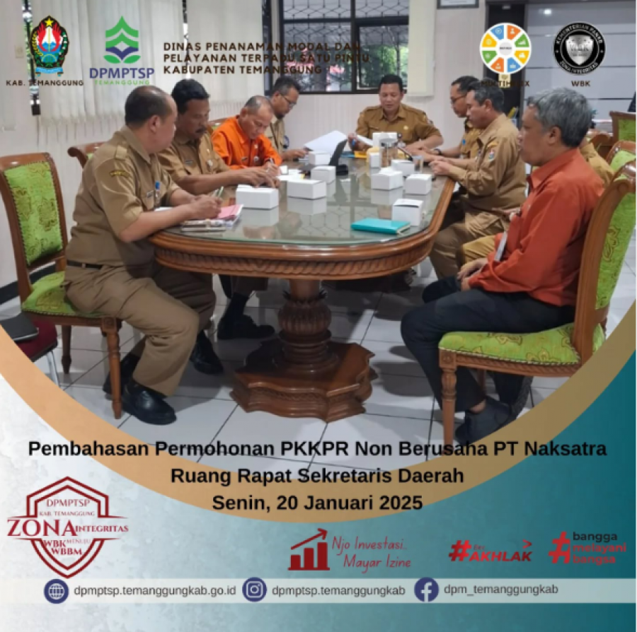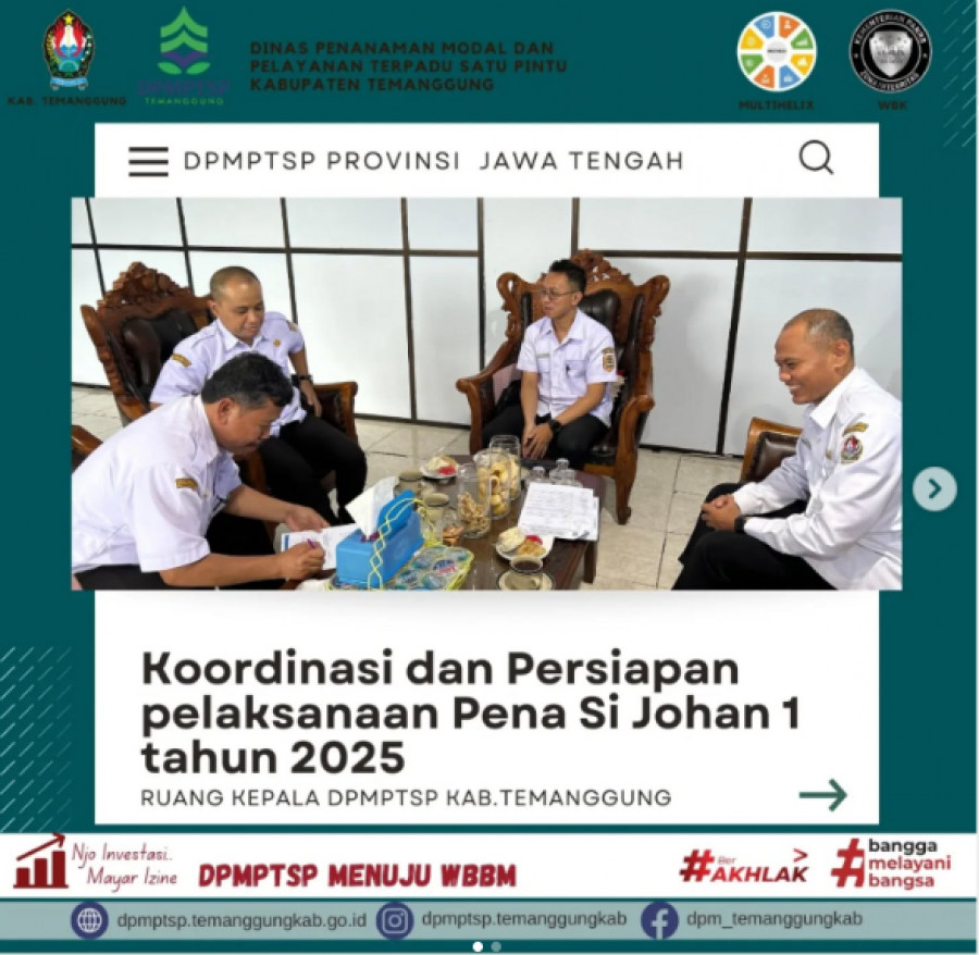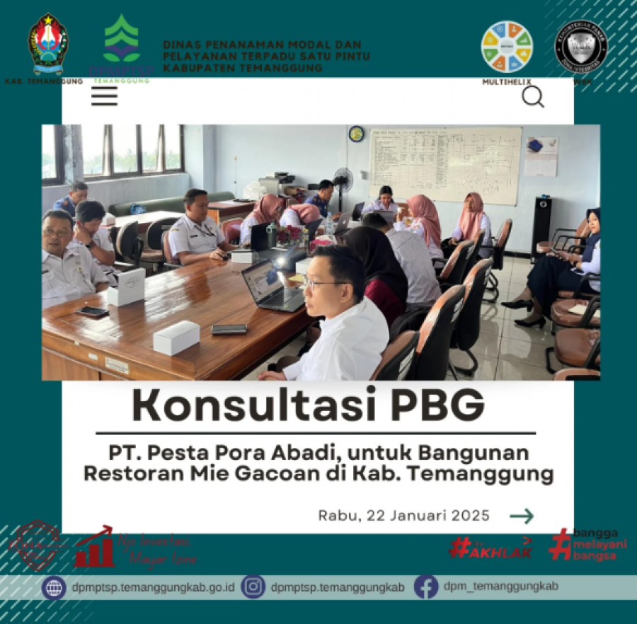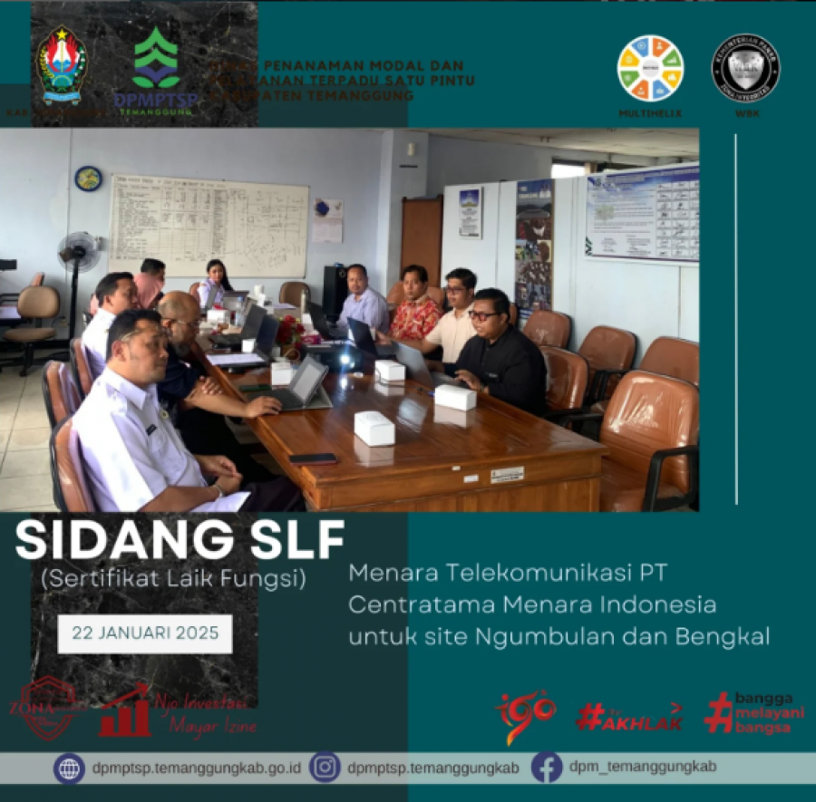 Kategori Lainnya Kategori: Lainnya Sekretariat 22 Januari 2025 10:43:00 55 Penyusunan LPPD-LKPD Selengkapnya Kategori: Lainnya Sekretariat 22 Januari 2025 10:34:00 60 Sidang Permohonan SLF Selengkapnya Kategori: Lainnya Sekretariat 22 Januari 2025 10:33:00 63 Zoom meeting Monitoring dan Evaluasi Penilaian Penyelenggaraan Pelayanan Publik Selengkapnya Kategori: Lainnya Sekretariat 22 Januari 2025 10:31:00 48 konsultasi PBG Selengkapnya Kategori: Lainnya Sekretariat 22 Januari 2025 10:29:00 53 sidang permohonan PBG Selengkapnya Kategori: Lainnya Sekretariat 22 Januari 2025 10:26:00 57 inovasi Pena si Johan Selengkapnya Kategori: Lainnya Sekretariat 22 Januari 2025 09:00:00 138 Dinpermades Temanggung Berduka atas Berpulangnya Kepala Dusun Kluwung, Suchafif Nur Rohman Selengkapnya Kategori: Lainnya Sekretariat 21 Januari 2025 10:28:00 45 One stop service Selengkapnya Kategori: Lainnya Sekretariat 21 Januari 2025 10:25:00 40 sosialisasi aplikasi SPPIRT Selengkapnya Kategori: Lainnya Sekretariat 21 Januari 2025 10:21:00 36 Rapat koordinasi internal DPMPTSP Selengkapnya Kategori: Lainnya Sekretariat 20 Januari 2025 10:24:00 44 Forum Penataan Ruang Selengkapnya Kategori: Lainnya Sekretariat 20 Januari 2025 10:23:00 47 Audit Kinerja DPMPTSP Selengkapnya FirstPrev5758596061NextLast