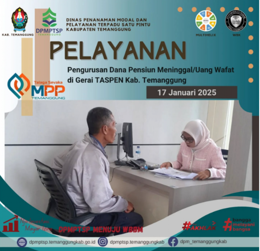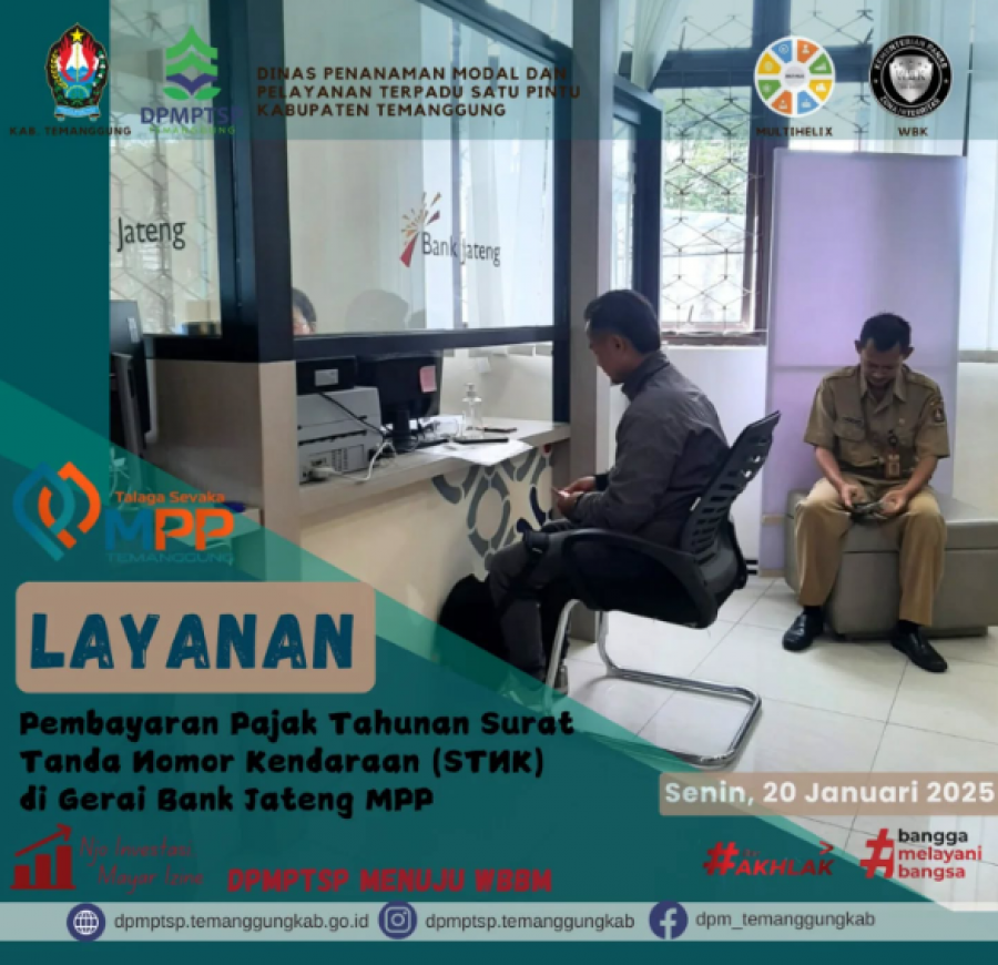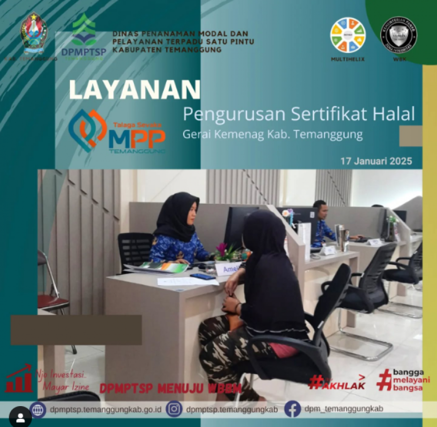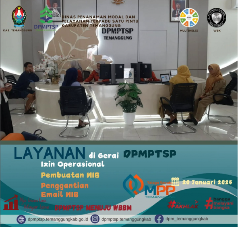 Kategori Lainnya Kategori: Lainnya Sekretariat 21 Januari 2025 10:21:00 36 Rapat koordinasi internal DPMPTSP Selengkapnya Kategori: Lainnya Sekretariat 20 Januari 2025 10:24:00 44 Forum Penataan Ruang Selengkapnya Kategori: Lainnya Sekretariat 20 Januari 2025 10:23:00 47 Audit Kinerja DPMPTSP Selengkapnya Kategori: Lainnya Sekretariat 20 Januari 2025 10:19:00 137 ayanan Pengurusan Sertifikat Laik Higiene Sanitasi (SLHS) Selengkapnya Kategori: Lainnya Sekretariat 20 Januari 2025 10:18:00 45 Layanan DPUPR di gerai MPP Talaga Sevaka Selengkapnya Kategori: Lainnya Sekretariat 20 Januari 2025 10:16:00 42 help desk DPMPTSP di MPP Talaga Sevaka Selengkapnya Kategori: Lainnya Sekretariat 20 Januari 2025 10:14:00 42 Layanan perbankan yang difasilitasi oleh Bank Jateng Selengkapnya Kategori: Lainnya Sekretariat 20 Januari 2025 10:13:00 40 Layanan Pendampingan NIB Selengkapnya Kategori: Lainnya Sekretariat 18 Januari 2025 11:55:00 40 Alur Pembuatan NIB Selengkapnya Kategori: Lainnya Sekretariat 17 Januari 2025 10:11:00 46 Forum PTSP se-Jawa Tengah Selengkapnya Kategori: Lainnya Sekretariat 17 Januari 2025 10:09:00 49 Sertifikat halal bisa diurus di gerai Kemenag MPP Talaga Sevaka Selengkapnya Kategori: Lainnya Sekretariat 17 Januari 2025 10:06:00 85 layanan Taspen hadir di MPP Talaga Sevaka Selengkapnya FirstPrev5859606162NextLast