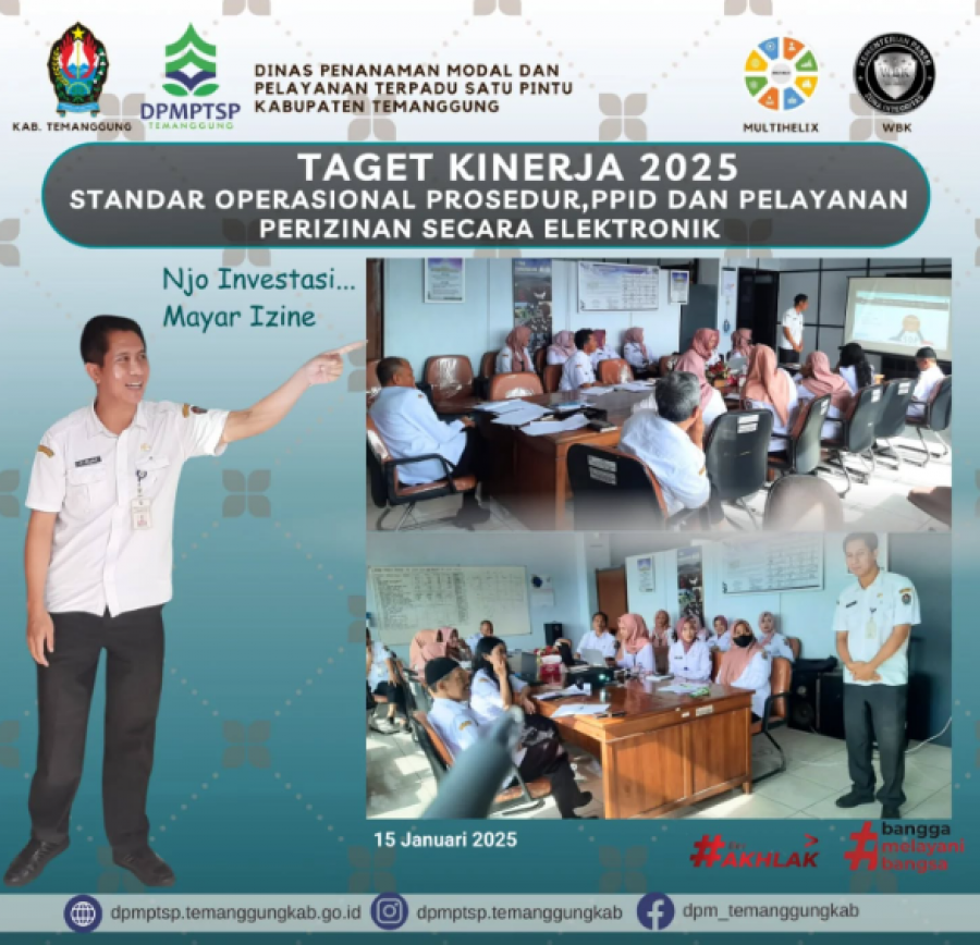 Kategori Lainnya Kategori: Lainnya Sekretariat 15 Januari 2025 09:53:00 35 Paparan target Kinerja Pengelolaan Arsip Selengkapnya Kategori: Lainnya Sekretariat 15 Januari 2025 09:51:00 50 Outing class adik-adik SD Pangudiutami Selengkapnya Kategori: Lainnya Sekretariat 15 Januari 2025 09:49:00 50 Kunjungan dari puluhan siswa SD Pangudi Utami Temanggung, Selengkapnya Kategori: Lainnya Sekretariat 15 Januari 2025 09:45:00 33 Paparan Target Kinerja 2025 Selengkapnya Kategori: Lainnya Sekretariat 15 Januari 2025 09:44:00 53 Sidang DPLH Selengkapnya Kategori: Lainnya Sekretariat 14 Januari 2025 10:37:00 171 Selamat Memperingati Hari Desa Nasional 2025 ???????? Selengkapnya Kategori: Lainnya Sekretariat 11 Januari 2025 11:55:00 39 Alur Pembuatan NIB Selengkapnya Kategori: Lainnya Sekretariat 11 Januari 2025 10:20:00 87 waspada dengan maraknya penipuan Selengkapnya Kategori: Lainnya Sekretariat 10 Januari 2025 10:19:00 74 Monitoring Aset Selengkapnya Kategori: Lainnya Sekretariat 10 Januari 2025 10:17:00 102 Pelaporan LKPM Triwulan IV Tahun 2024 Selengkapnya Kategori: Lainnya Sekretariat 10 Januari 2025 10:15:00 102 Selamat bergabung @ukpbj_temanggung di MPP Talaga Sevaka Selengkapnya Kategori: Lainnya Sekretariat 10 Januari 2025 10:14:00 86 Pelayanan administrasi kependudukan di MPP Selengkapnya FirstPrev6061626364NextLast