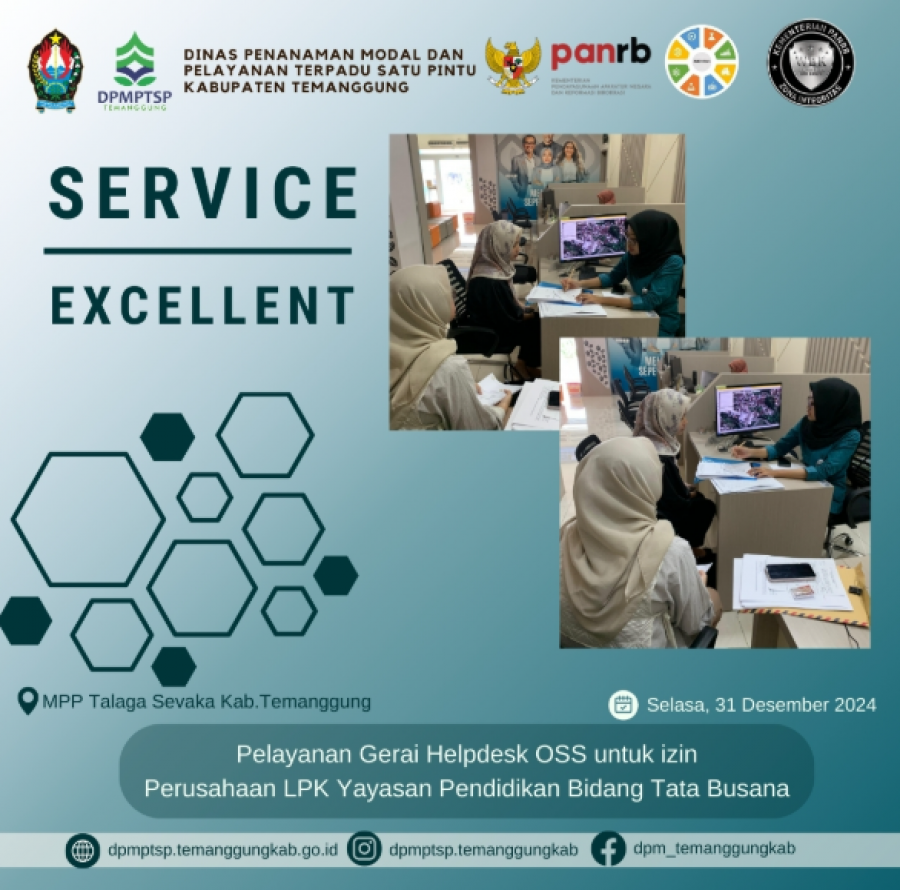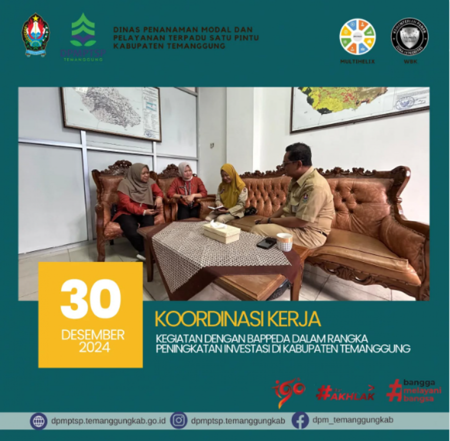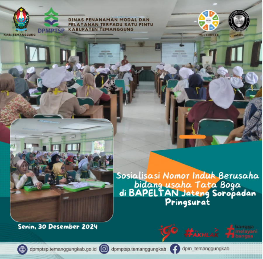 Kategori Lainnya Kategori: Lainnya Sekretariat 31 Desember 2024 15:34:00 82 Rapat Evaluasi Internal Pelayanan Perizinan DPMPTSP Kabupaten Temanggung Selengkapnya Kategori: Lainnya Sekretariat 31 Desember 2024 15:32:00 78 Pelayanan Gerai Helpdesk OSS untuk izin Perusahaan LPK Yayasan Pendidikan Bidang Tata Busana Selengkapnya Kategori: Lainnya Sekretariat 31 Desember 2024 15:31:00 65 Pelayanan Gerai DKK Temanggung untuk izin SLHS Bidang Usaha Catering dan Rumah Makan Selengkapnya Kategori: Lainnya Sekretariat 31 Desember 2024 15:30:00 61 Pelayanan Gerai DPMPTSP untuk izin KKPR berusaha Selengkapnya Kategori: Lainnya Sekretariat 31 Desember 2024 15:08:00 173 Dinpermades Temanggung Adakan Rapat Koordinasi Resolusi 2025 dengan Tema 'Dinamis' Selengkapnya Kategori: Lainnya Sekretariat 31 Desember 2024 10:25:00 130 DPRKPLH Kabupaten Temanggung Mengucapkan Selamat Tahun Baru 2025 Selengkapnya Kategori: Lainnya Sekretariat 30 Desember 2024 15:33:00 52 Sosialisasi Nomor Induk Berusaha (NIB) bidang Usaha Tata Boga Selengkapnya Kategori: Lainnya Sekretariat 30 Desember 2024 15:29:00 51 Rakor terkait Peningkatan Investasi di Kabupaten Temanggung Selengkapnya Kategori: Lainnya Sekretariat 30 Desember 2024 15:28:00 46 Rapat Pemeriksaan Formulir Kerangka Acuan Rencana Kegiatan Pengembangan RSUD Temanggung Selengkapnya Kategori: Lainnya Sekretariat 30 Desember 2024 15:26:00 61 Rembug Bareng Perencanaan Pembangunan Daerah Kabupaten Temanggung 2025-2029 Selengkapnya Kategori: Lainnya Sekretariat 30 Desember 2024 15:25:00 58 Penyerahan Digital Signage MPP Talaga Sevaka Selengkapnya Kategori: Lainnya Sekretariat 30 Desember 2024 15:24:00 75 Dialog kinerja DPMPTSP Selengkapnya FirstPrev6566676869NextLast