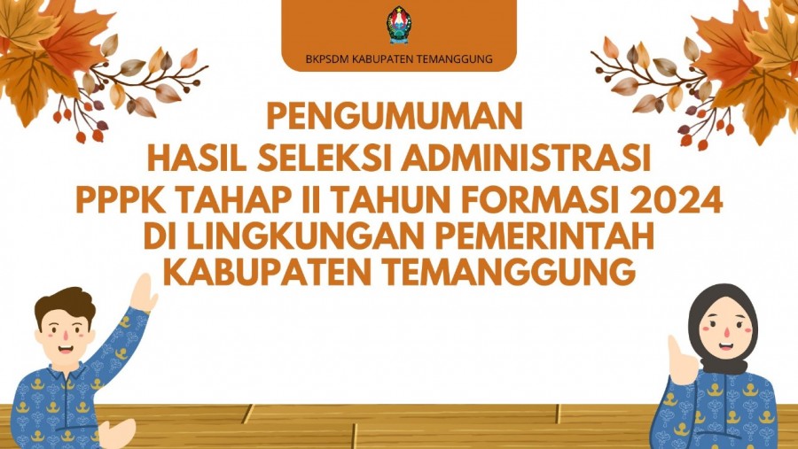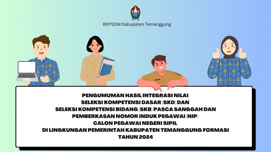 Kategori Pengumuman Kategori: Pengumuman Sekretariat 04 Maret 2025 08:54:00 171 Jam Pelayanan Selengkapnya Kategori: Pengumuman Sekretariat 28 Februari 2025 09:45:00 5135 PENGUMUMAN HASIL SELEKSI ADMINISTRASI PASCA SANGGAH PENGADAAN PPPK TAHAP II DI LINGKUNGAN PEMERINTAH KABUPATEN TEMANGGUNG FORMASI TAHUN 2024 Selengkapnya Kategori: Pengumuman Sekretariat 25 Februari 2025 13:00:00 283 Gerakan Pangan Murah (GPM) Selengkapnya Kategori: Pengumuman Sekretariat 17 Februari 2025 09:21:00 7344 PENGUMUMAN HASIL SELEKSI ADMINISTRASI PENGADAAN PEGAWAI PEMERINTAH DENGAN PERJANJIAN KERJA TAHAP II DI LINGKUNGAN PEMERINTAH KABUPATEN TEMANGGUNG FORMASI TAHUN 2024 Selengkapnya Kategori: Pengumuman Sekretariat 12 Februari 2025 09:51:00 191 Pembangunan Zona Integritas menuju WBK dan WBBM Selengkapnya Kategori: Pengumuman Sekretariat 06 Februari 2025 16:04:00 1275 PENGUMUMAN PEMBERKASAN CALON PEGAWAI NEGERI SIPIL (CPNS) LULUSAN SEKOLAH KEDINASAN POLITEKNIK TRANSPORTASI DARAT INDONESIA – STTD DI LINGKUNGAN PEMERINTAH KABUPATEN TEMANGGUNG FORMASI TAHUN 2024 Selengkapnya Kategori: Pengumuman Sekretariat 06 Februari 2025 10:38:00 99 Innalillahi wa inna ilaihi raji’un Selengkapnya Kategori: Pengumuman Sekretariat 29 Januari 2025 19:25:00 42 Pembangunan Zona Integritas Selengkapnya Kategori: Pengumuman Sekretariat 23 Januari 2025 17:36:00 1085 PENGUMUMAN NOMOR : B/1/800/I/2025 TENTANG RALAT JADWAL TES KESEHATAN PEMBERKASAN NOMOR INDUK PEGAWAI (NIP) PENGADAAN CALON PEGAWAI NEGERI SIPIL DI LINGKUNGAN PEMERINTAH KABUPATEN TEMANGGUNG FORMASI TAHUN 2024 Selengkapnya Kategori: Pengumuman Sekretariat 22 Januari 2025 15:20:00 2999 PENGUMUMAN HASIL INTEGRASI NILAI SELEKSI KOMPETENSI DASAR (SKD) DAN SELEKSI KOMPETENSI BIDANG (SKB) PASCA SANGGAH DAN PEMBERKASAN NOMOR INDUK PEGAWAI (NIP) CALON PEGAWAI NEGERI SIPIL DI LINGKUNGAN PEMERINTAH KABUPATEN TEMANGGUNG FORMASI TAHUN 2024 Selengkapnya Kategori: Pengumuman Sekretariat 13 Januari 2025 13:00:00 195 Hallo hallo sobattt DKPPP Selengkapnya Kategori: Pengumuman Sekretariat 08 Januari 2025 15:42:00 6586 PENGUMUMAN HASIL INTEGRASI NILAI SELEKSI KOMPETENSI DASAR (SKD) DAN SELEKSI KOMPETENSI BIDANG (SKB) PENGADAAN CALON PEGAWAI NEGERI SIPIL (CPNS) DI LINGKUNGAN PEMERINTAH KABUPATEN TEMANGGUNG FORMASI TAHUN 2024 Selengkapnya FirstPrev1415161718NextLast