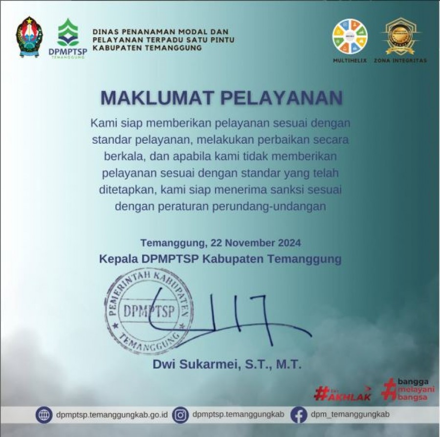 Kategori Pengumuman Kategori: Pengumuman Sekretariat 27 November 2024 11:09:00 120 PILKADA TEMANGGUNG TAHUN 2024 Selengkapnya Kategori: Pengumuman Sekretariat 25 November 2024 10:54:00 187 Selamat Hari Guru Nasional Selengkapnya Kategori: Pengumuman Sekretariat 22 November 2024 14:27:00 1843 Contoh Label PIRT Selengkapnya Kategori: Pengumuman Sekretariat 22 November 2024 14:25:00 257 Syarat Pembuatan PIRT Selengkapnya Kategori: Pengumuman Sekretariat 22 November 2024 14:24:00 334 Tata Cara Pembuatan PIRT Selengkapnya Kategori: Pengumuman Sekretariat 22 November 2024 14:22:00 134 MAKLUMAT PELAYANAN Selengkapnya Kategori: Pengumuman Sekretariat 21 November 2024 14:20:00 144 Hasil Survey IKM DPMPTSP Kabupaten Temanggung Selengkapnya Kategori: Pengumuman Sekretariat 18 November 2024 12:25:00 9468 PENGUMUMAN HASIL SELEKSI KOMPETENSI DASAR (SKD) PENGADAAN CALON PEGAWAI NEGERI SIPIL (CPNS) DI LINGKUNGAN PEMERINTAH KABUPATEN TEMANGGUNG FORMASI TAHUN 2024 Selengkapnya Kategori: Pengumuman Sekretariat 14 November 2024 11:47:00 326 Hasil Penilaian Kinerja PTSP dan PPB Tahun 2024 Selengkapnya Kategori: Pengumuman Sekretariat 13 November 2024 13:00:00 138 Sobat Invest Parakan dan sekitarnya bisa merapat untuk melegalkan izin usahanya Selengkapnya Kategori: Pengumuman Sekretariat 12 November 2024 10:33:00 133 Hari Kesehatan Nasional Tahun 2024 Selengkapnya Kategori: Pengumuman Sekretariat 11 November 2024 14:04:00 8168 PENGUMUMAN PENGADAAN PEGAWAI PEMERINTAH DENGAN PERJANJIAN KERJA TAHAP II DI LINGKUNGAN PEMERINTAH KABUPATEN TEMANGGUNG FORMASI TAHUN 2024 Selengkapnya FirstPrev1718192021NextLast