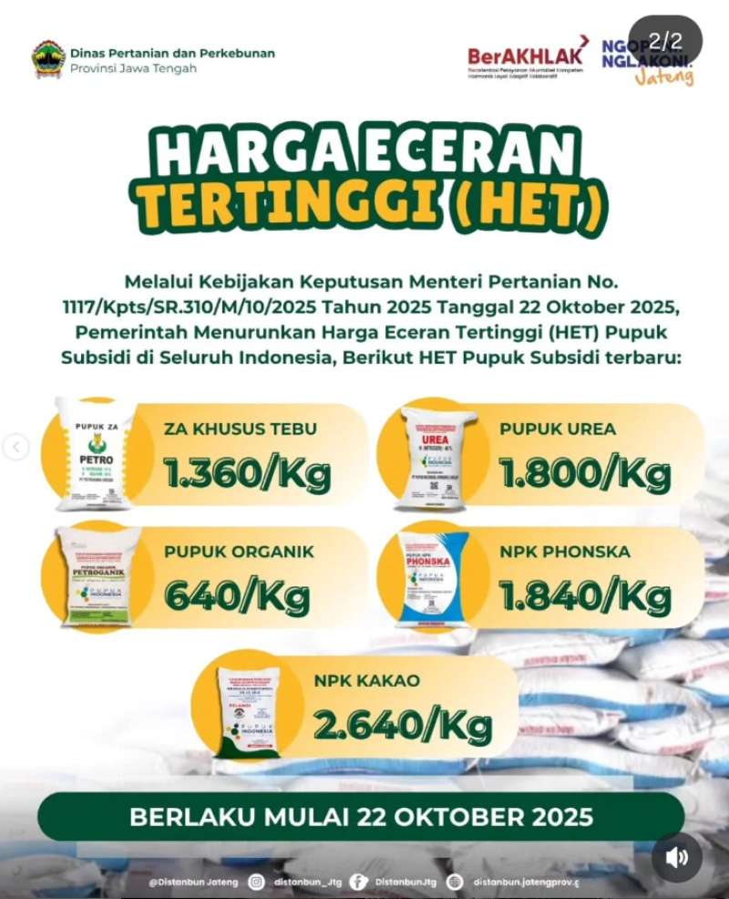 Kategori KEMISKINAN EKSTRIM Kategori: Smart Government (Pemerintah Cerdas) , KEMISKINAN EKSTRIM 05 November 2025 10:00:00 39 Terimakasih Bapak @prabowo & Bapak @a.amran_sulaiman Selengkapnya Kategori: Smart Government (Pemerintah Cerdas) , KEMISKINAN EKSTRIM 05 November 2025 10:00:00 47 Penebusan Pupuk Subsidi Selengkapnya Kategori: Smart Government (Pemerintah Cerdas) , KEMISKINAN EKSTRIM 04 November 2025 13:00:00 25 Uji kadar air dan aflatoksin pada jagung hibrida Selengkapnya Kategori: Lainnya , KEMISKINAN EKSTRIM 31 Oktober 2025 13:00:00 21 Testimoni penurunan harga pupuk bersubsidi Selengkapnya Kategori: Smart Environtment (Lingkungan Cerdas) , KEMISKINAN EKSTRIM 27 Oktober 2025 22:00:00 35 PPHT Cengkeh Dorong Pengendalian Penyakit dan Peningkatan Produksi Rempah di Temanggung Selengkapnya Kategori: Smart Society (Masyarakat Cerdas) , KEMISKINAN EKSTRIM 27 Oktober 2025 15:00:00 31 Farmer Field Day Sekolah Lapang Cabai Tekankan Pengendalian Hama Terpadu Selengkapnya Kategori: Smart Environtment (Lingkungan Cerdas) , KEMISKINAN EKSTRIM 27 Oktober 2025 13:00:00 50 PPHT Kopi Perkuat Produksi dan Produktivitas Kopi Temanggung Selengkapnya Kategori: Smart Environtment (Lingkungan Cerdas) , KEMISKINAN EKSTRIM 24 Oktober 2025 22:00:00 46 Bimtek Bawang Putih: Menyala Petani Bawang Putih Nusantara Selengkapnya Kategori: Smart Society (Masyarakat Cerdas) , KEMISKINAN EKSTRIM 22 Oktober 2025 16:00:00 20 PPHT Bawang Putih Geol KT Barokah Makmur Mandiri dan Jaya Abadi Selengkapnya Kategori: Pengumuman , KEMISKINAN EKSTRIM 20 Oktober 2025 10:00:00 41 HARGA ECERAN TERTINGGI (HET) PUPUK BERSUBSIDI TURUN ?? Selengkapnya Kategori: Smart Society (Masyarakat Cerdas) , KEMISKINAN EKSTRIM 14 Oktober 2025 13:00:00 90 pertemuan KTNA/Gapoktan Selengkapnya Kategori: Smart Society (Masyarakat Cerdas) , KEMISKINAN EKSTRIM 07 Oktober 2025 14:00:00 37 PPHT Bawang Putih Geol Selengkapnya Prev1234NextLast
