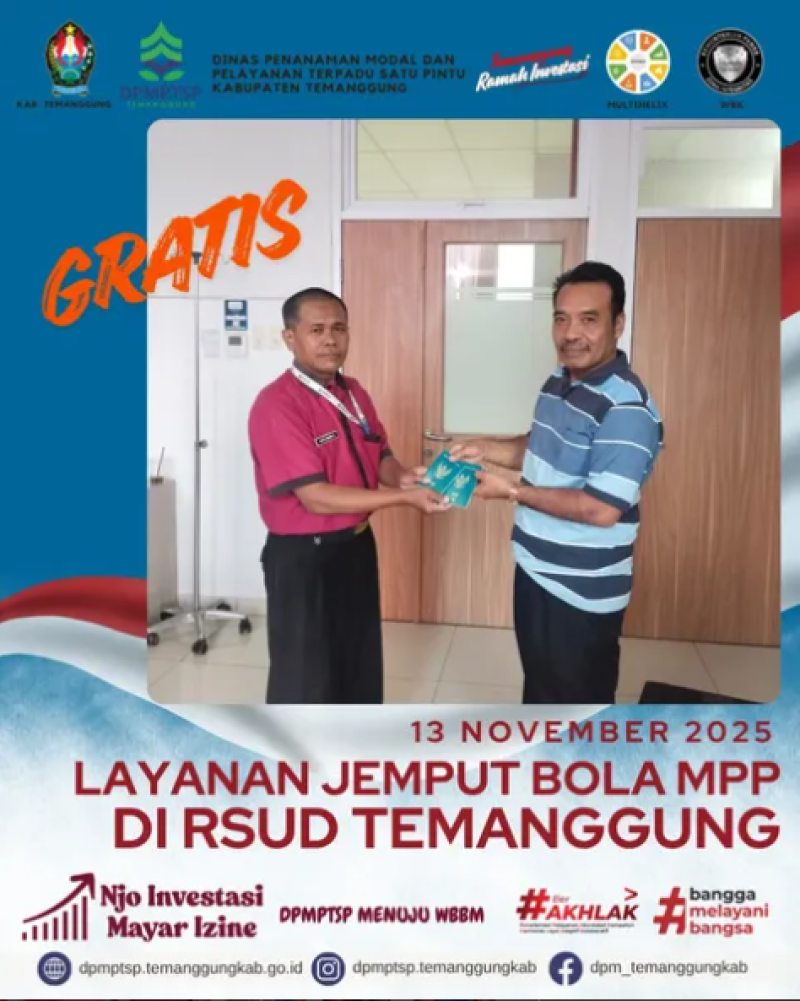 Kategori Lainnya Kategori: Smart Environtment (Lingkungan Cerdas) , Lainnya 18 November 2025 09:36:00 31 Tinjauan Lokasi Tanah Kas Desa Pingit yang Terdampak Pembangunan Tol Yogyakarta–Bawen Selengkapnya Kategori: Smart Living (Hidup Cerdas) , Lainnya 18 November 2025 09:36:00 42 Rapat Koordinasi Tim Pembina Posyandu dan Raker PKK Provinsi Jawa Tengah Tahun 2025 Selengkapnya Kategori: Smart Society (Masyarakat Cerdas) , Lainnya 18 November 2025 09:35:00 31 Pemantauan Ujian Perangkat Desa Gandu Wetan Kecamatan Ngadirejo Selengkapnya Kategori: Smart Government (Pemerintah Cerdas) , Lainnya 18 November 2025 09:33:00 21 Rapat Evaluasi Pelaksanaan Kewajiban Perpajakan Pemerintah Desa bersama Kasi PM Kecamatan Selengkapnya Kategori: Smart Society (Masyarakat Cerdas) , Lainnya 18 November 2025 09:32:00 24 Monitoring Pengisian Perangkat Desa Tegowanuh Kecamatan Kaloran Selengkapnya Kategori: Lainnya , Lainnya 17 November 2025 18:28:00 5 Layanan Perizinan RDTR Selengkapnya Kategori: Pengumuman , Lainnya 17 November 2025 18:22:00 34 Layanan di MPP Talag Sevaka Selengkapnya Kategori: Lainnya , Lainnya 17 November 2025 18:21:00 4 Hasil Seleksi Atlet Tenis Lapangan Selengkapnya Kategori: Smart Government (Pemerintah Cerdas) , Lainnya 17 November 2025 18:19:00 6 Layanan Jemput Bola Paspor Selengkapnya Kategori: Lainnya , Lainnya 17 November 2025 18:17:00 6 MAGANG & KKN TERINTEGRASI INISNU TEMANGGUNG DI DPMPTSP TEMANGGUNG Selengkapnya Kategori: Lainnya , Lainnya 17 November 2025 18:16:00 6 KMD Penggalang Selengkapnya Kategori: Smart Government (Pemerintah Cerdas) , Lainnya 17 November 2025 14:24:00 33 TAGANA KABUPATEN TEMANGGUNG MELAKUKAN BACK UP DAPUR UMUM DI DUSUN SITUKUNG DESA PANDANARUM KECAMATAN PANDANARUM BANJARNEGARA Selengkapnya FirstPrev4243444546NextLast