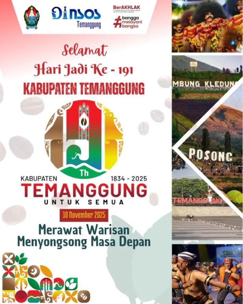 Kategori Lainnya Kategori: Pengumuman , Lainnya 10 November 2025 19:32:00 31 SELAMAT HARI PAHLAWAN Selengkapnya Kategori: Lainnya , Lainnya 10 November 2025 17:56:00 4 Magang KKN Selengkapnya Kategori: Pengumuman , Lainnya 10 November 2025 17:53:00 22 Perubahan alur proses OSS-RBA Selengkapnya Kategori: Lainnya , Lainnya 10 November 2025 17:52:00 5 Salam Investasi Selengkapnya Kategori: Lainnya , Lainnya 10 November 2025 14:22:00 31 Temanggung Menari ? Selengkapnya Kategori: Lainnya , Lainnya 10 November 2025 11:56:00 48 Selamat Hari Jadi ke-191 Kabupaten Temanggung Selengkapnya Kategori: Lainnya , Lainnya 10 November 2025 11:56:00 31 Selamat Memperingati Hari Pahlawan Nasional 2025 Selengkapnya Kategori: Smart Government (Pemerintah Cerdas) , Lainnya 10 November 2025 10:46:00 17 Upacara Bendera Dalam Rangka Peringatan Hari Pahlawan dan Hari Jadi Kabupaten Temanggung Ke 191 Tahun Selengkapnya Kategori: Smart Government (Pemerintah Cerdas) , Lainnya 10 November 2025 10:09:00 36 Dinas Sosial Kabupaten Temanggung mengucapkan Selamat Hari Jadi Ke 191 Kabupaten Temanggung 10 November 2025 Selengkapnya Kategori: Smart Government (Pemerintah Cerdas) , Lainnya 10 November 2025 10:05:00 29 Dinas Sosial Kabupaten Temanggung mengucapkan Selamat Hari Pahlawan Nasional 10 November 2025 Selengkapnya Kategori: Smart Government (Pemerintah Cerdas) , Lainnya 10 November 2025 09:49:00 42 Dinas Sosial Kabupaten Temanggung bersama Taruna Siaga Bencana (TAGANA) Temanggung melakukan kegiatan penanggulangan bencana rumah roboh Selengkapnya Kategori: Smart Government (Pemerintah Cerdas) , Lainnya 10 November 2025 09:35:00 21 Dinas Sosial Kabupaten Temanggung bersama Taruna Siaga Bencana (TAGANA) Temanggung melakukan kegiatan penanggulangan bencana tanggul jebol Selengkapnya FirstPrev4950515253NextLast