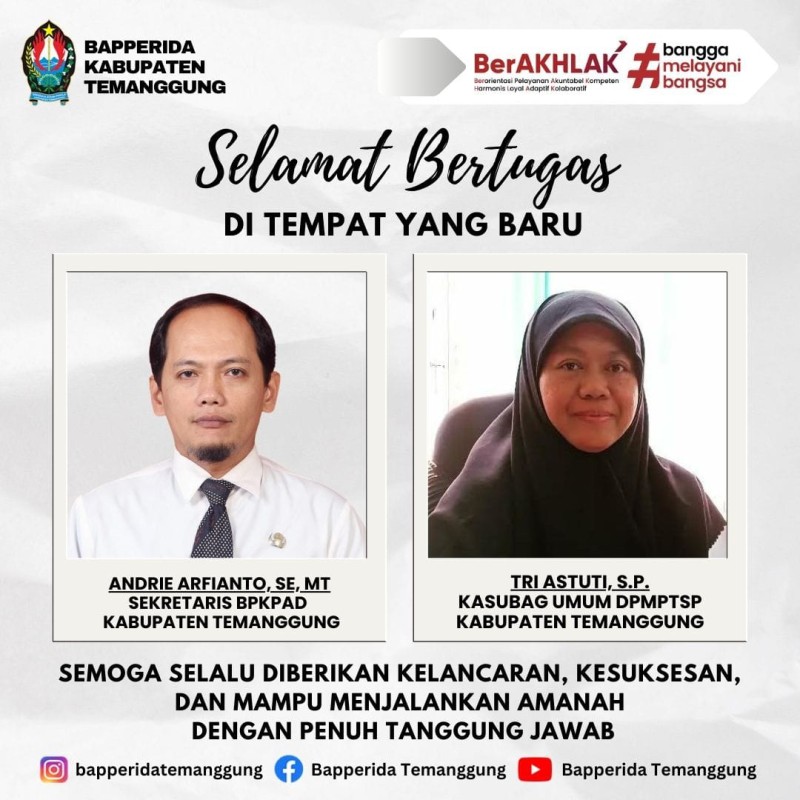 Terima Kasih Atas Dedikasinya Selama Berada di Bapperida Kabupaten Temanggung, Semoga Sukses Selalu di Tempat Yang Baru Kategori: Smart Government (Pemerintah Cerdas) Jumat, 06/02/2026 19:05 0 .