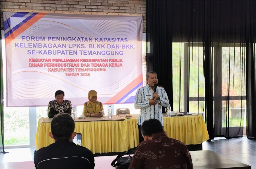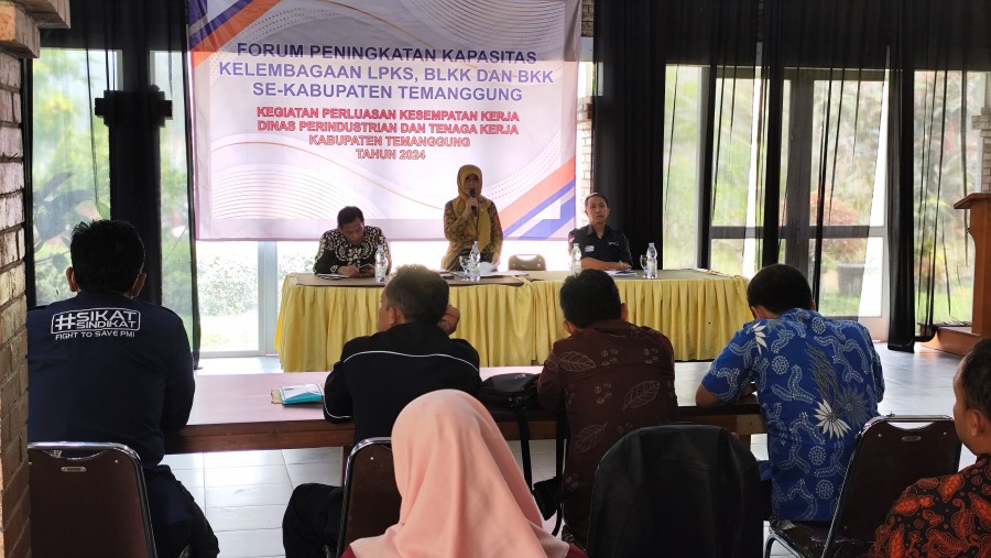 Dinas Perindustrian dan Tenaga Kerja Kabupaten Temanggung mengadakan kegiatan Forum Peningkatan Kapasitas Kelembagaan LPKS, BLKK dan BKK Se-Kabupaten Temanggung bertempat di Kampung Sawah pada hari Kamis 8 Agustus 2024.