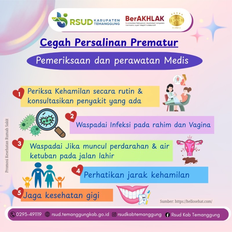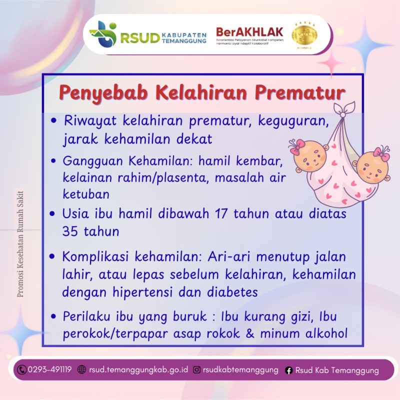 Dalam semangat “Awal yang Sehat, Masa Depan Penuh Harapan” (Healthy Beginnings, Hopeful Futures), RSUD Kabupaten Temanggung mengajak seluruh masyarakat untuk lebih peduli dalam mencegah kelahiran prematur.