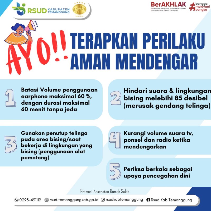Mari jaga aset pendengaran kita untuk kualitas hidup yang lebih baik. Jika ada keluhan, segera konsultasikan ke Poliklinik RSUD Kabupaten Temanggung.