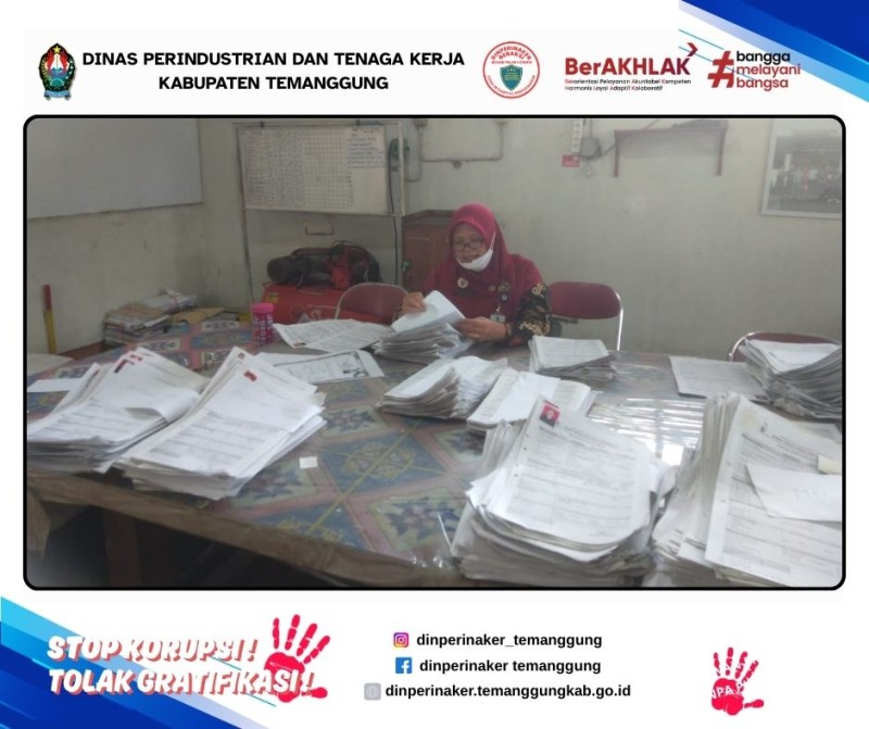 Dinperinaker Temanggung sedang melakukan pencatatan berkas inaktif 10 tahun ke belakang yang dikerjakan bersama oleh seluruh bidang.