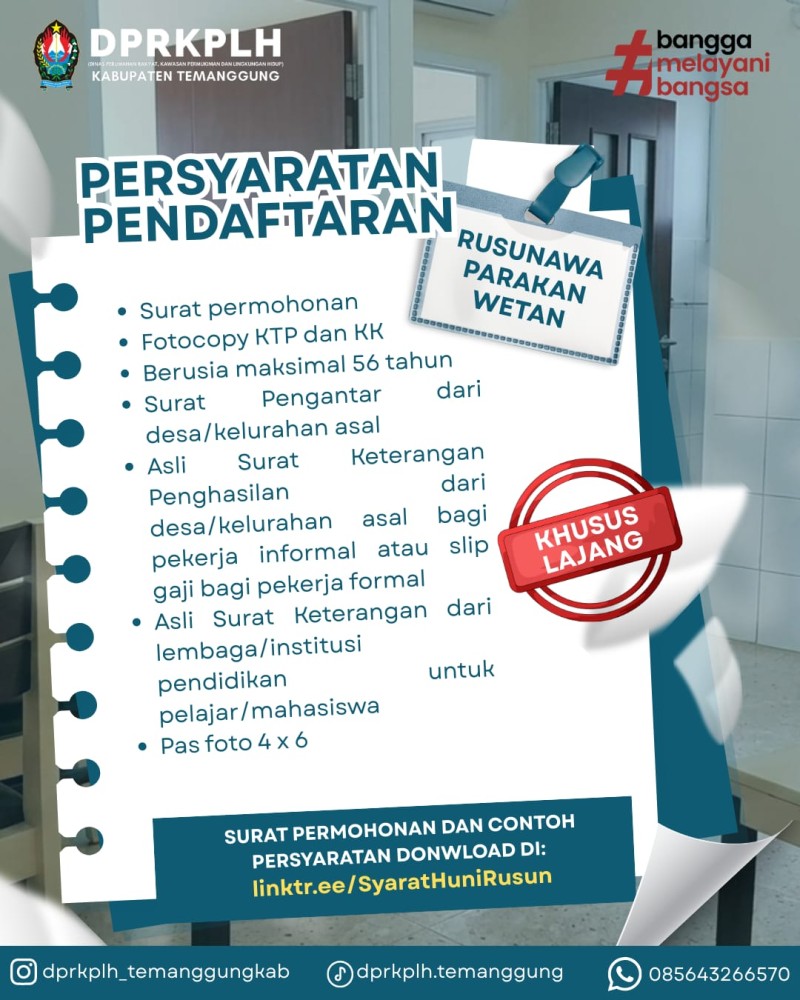 ?Kabar gembira untuk warga Temanggung! Bagi Anda yang sedang mencari hunian nyaman, aman, dan terjangkau, pendaftaran Rusunawa masih dibuka.