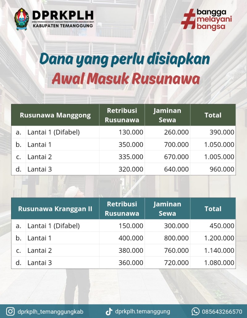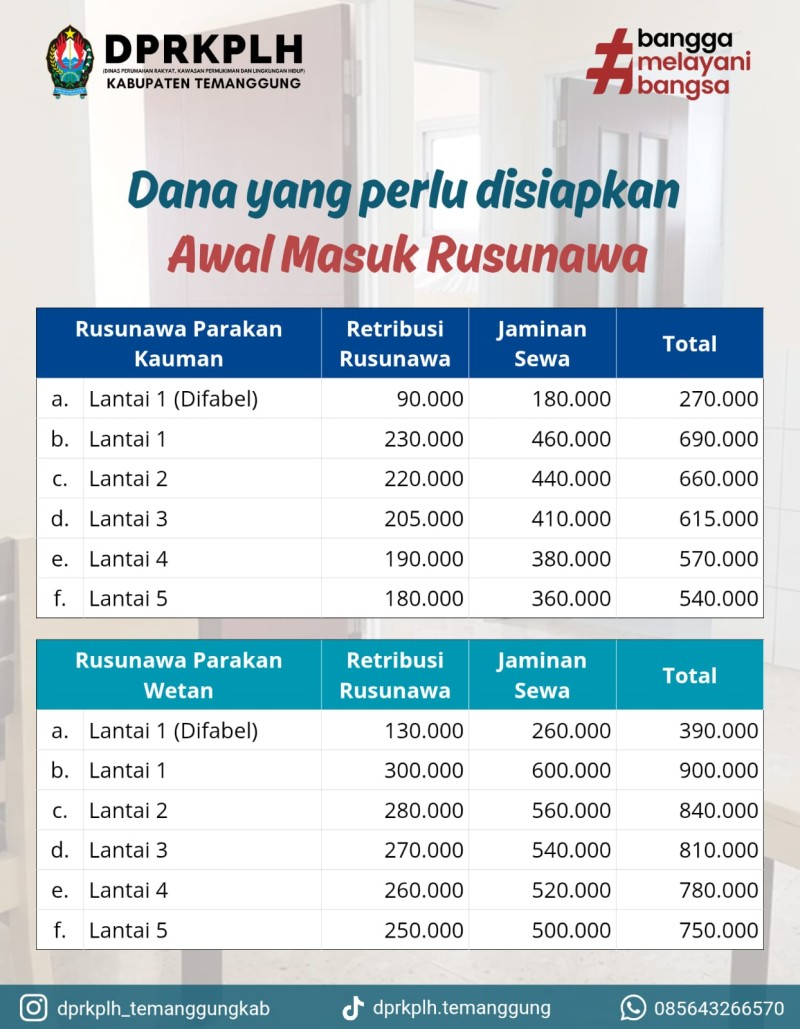 Halo Warga Temanggung! Perlu diketahui bahwa seluruh proses pendaftaran Rusunawa Kabupaten Temanggung TIDAK DIPUNGUT BIAYA alias GRATIS.