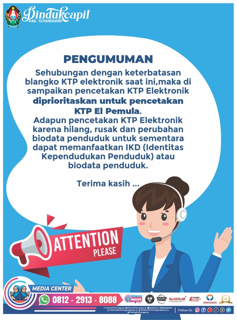 Informasi Kategori: Pengumuman Rabu, 04/02/2026 11:48 14 Gebyar PKK Februari 2026 Selengkapnya Kategori: Pegawai Rabu, 04/02/2026 11:47 17 Webinar Korpri Menyapa ASN Selengkapnya Kategori: Pengumuman Rabu, 04/02/2026 11:45 13 Donor Darah Selengkapnya Kategori: Pengumuman Jumat, 30/01/2026 18:13 193 Pendaftaran Pelatihan BLK Temanggung Selengkapnya Kategori: Pengumuman Kamis, 29/01/2026 13:55 113 Pendaftaran Calon Anggota Dewan Pendidikan Kabupaten Temanggung Periode 2026–2030 Selengkapnya Kategori: PENGUMUMAN Senin, 26/01/2026 08:42 65 WASPADA PENIPUAN MENGATASNAMAKAN DUKCAPIL TEMANGGUNG Selengkapnya Kategori: Statistik Dinas Sosial Kamis, 22/01/2026 16:08 60 Data Penasehatan Pada Bulan Juli- Desember 2025. Selengkapnya Kategori: Statistik Dinas Sosial Kamis, 22/01/2026 16:01 65 Data Penasehatan Bulan Juli- Desember 2025 Berdasarkan Jenis Kelamin. Selengkapnya Kategori: Statistik Dinas Sosial Kamis, 22/01/2026 15:24 65 Data Penasehatan Bulan Juli- Desember 2025 Selengkapnya Kategori: Pengumuman Kamis, 22/01/2026 10:47 75 INFO LOKER TERKINI – URGENTLY NEEDED! ???? Selengkapnya Kategori: PENGUMUMAN Selasa, 20/01/2026 13:42 110 PENGUMUMAN LAYANAN KTP ELEKTRONIK Selengkapnya Kategori: Pengumuman Senin, 19/01/2026 11:39 59 Lowongan Kerja PNM Meekar Selengkapnya 123NextLast