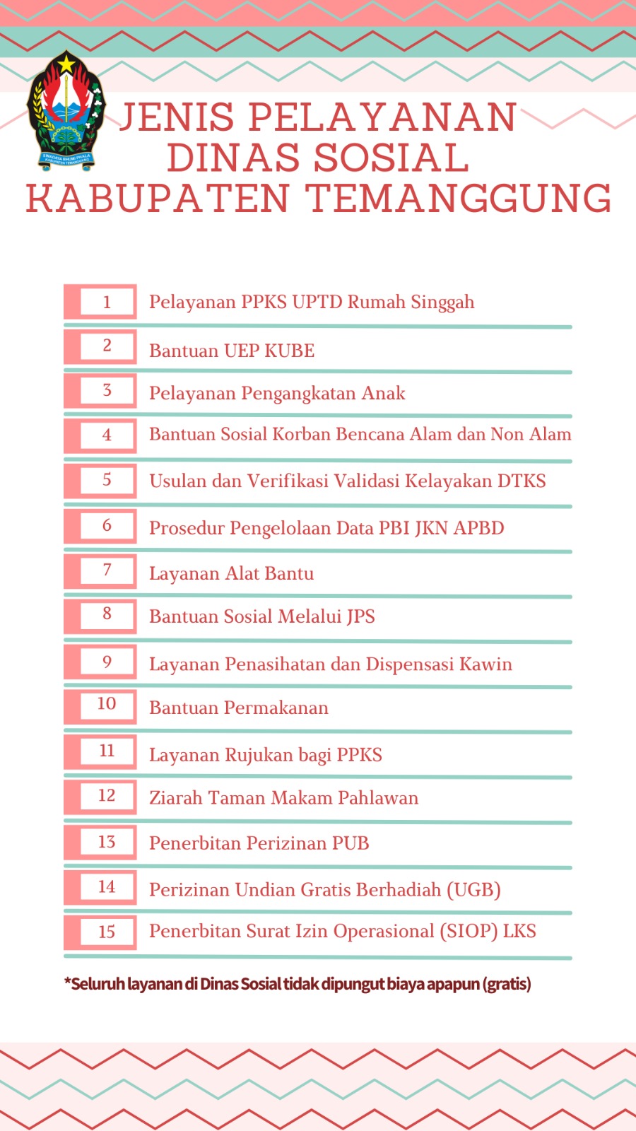 Pelayanan Kategori: Bidang Perizinan Selasa, 07/05/2024 09:45 251 IZIN PENYELENGGARAAN REKLAME UKURAN MENENGAH BESAR Selengkapnya Kategori: Alur Proses Senin, 06/05/2024 12:02 402 ALUR PERIZINAN DI KANTOR DPMPTSP KAB. TEMANGGUNG Selengkapnya Kategori: Standar Layanan Senin, 29/04/2024 15:04 276 JENIS LAYANAN DI DINAS SOSIAL Selengkapnya Kategori: UPT Senin, 29/04/2024 13:40 201 Bagan Organisasi Rumah Singgah Selengkapnya Kategori: Standar Layanan Senin, 29/04/2024 13:37 246 Layanan Pengaduan Daring/ Langsung Selengkapnya Kategori: Standar Layanan Senin, 29/04/2024 13:35 226 Penyaluran Pengaduan yang Bukan Kewenangan Dinas Sosial Selengkapnya Kategori: Bidang Pemberdayaan Sosial Jumat, 26/04/2024 14:14 245 PEDOMAN ZIARAH DI TMP DAN MP Selengkapnya Kategori: Bidang Pemberdayaan Sosial Jumat, 26/04/2024 14:12 223 UNDIAN GRATIS BRHADIAH Selengkapnya Kategori: Bidang Pemberdayaan Sosial Jumat, 26/04/2024 14:11 251 PENGUMPULAN UANG BARANG Selengkapnya Kategori: Bidang Perlindungan dan Jaminan Sosial Senin, 29/04/2024 14:56 278 STANDAR PELAYANAN BANTUAN STIMULAN UEP Selengkapnya Kategori: Bidang Rehabilitasi Sosial Jumat, 26/04/2024 14:05 229 LAYANAN PERMAKANAN BAGI PPKS Selengkapnya Kategori: Bidang Rehabilitasi Sosial Jumat, 26/04/2024 14:03 285 DISPENSASI KAWIN Selengkapnya FirstPrev56789NextLast